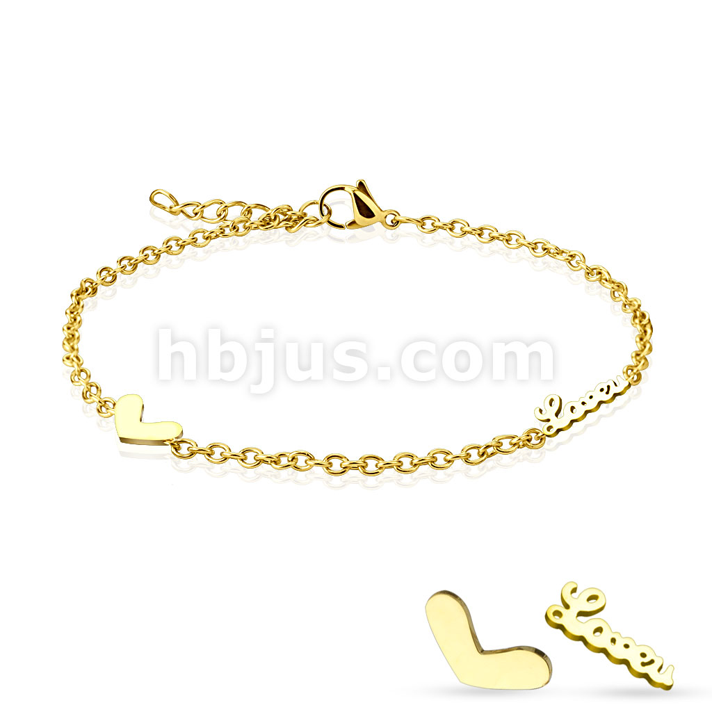 Heart "Love" Charm 316L Stainless Steel Chain Anklet/Bracelet