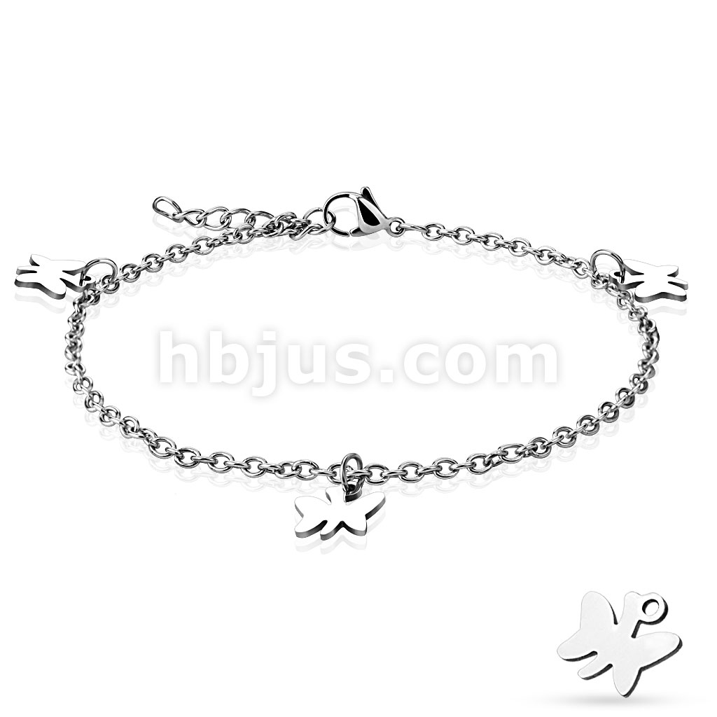 Dangling Butterfly Charm 316L Stainless Steel Chain Anklet/Bracelet