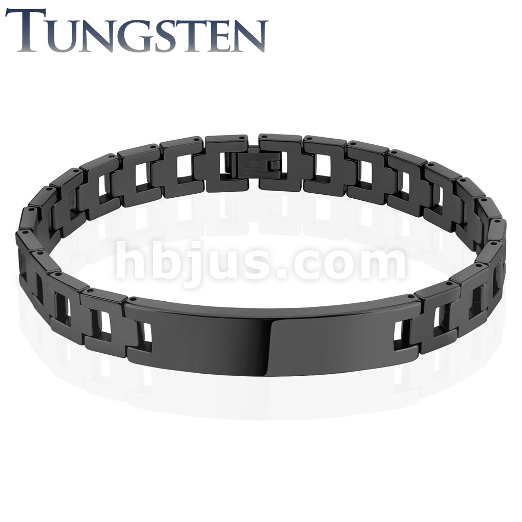 Hollow Square Chains with ID Plate Black IP Over Tungsten Carbide Bracelet