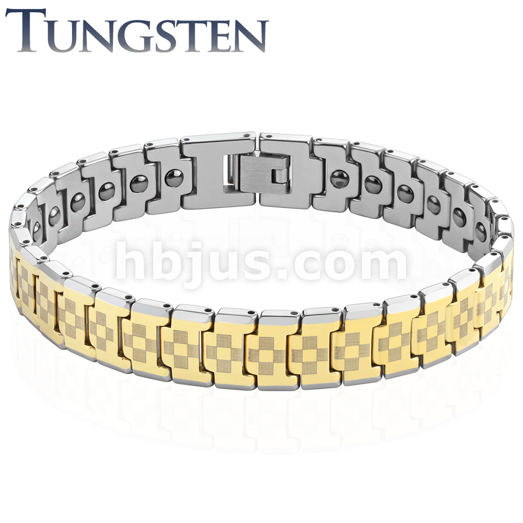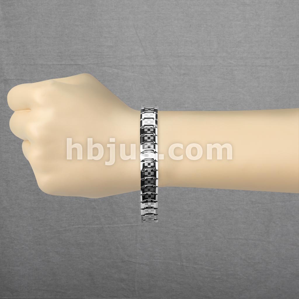 Laser Engraved Checkered Links Tungsten Carbide Bracelet
