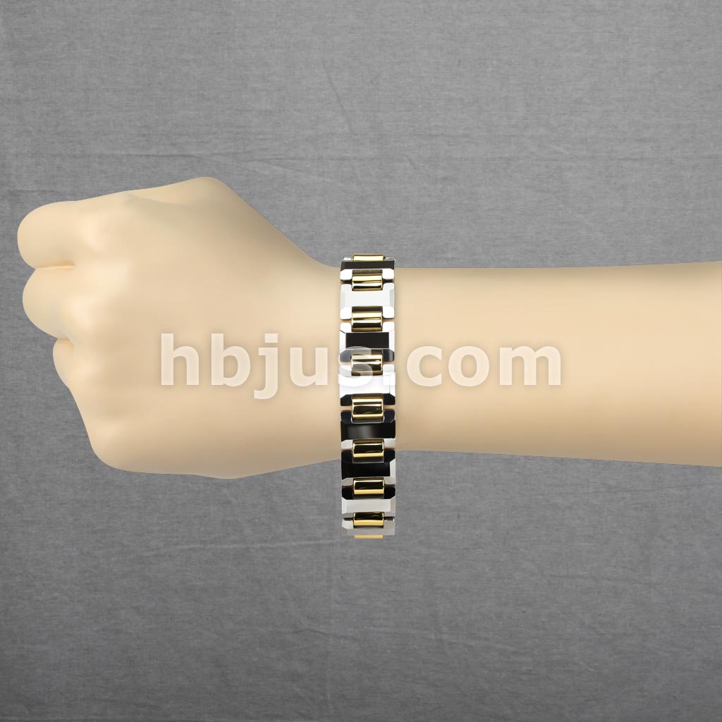 Heavy Width H with Blue IP Links Tungsten Carbide Bracelet