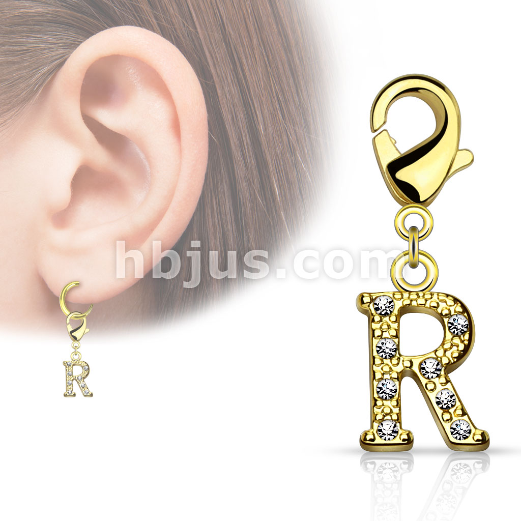 CZ Paved 14Kt. Gold Plated Initial Charms With Lobster Claw for Belly Rings, Bracelets and More