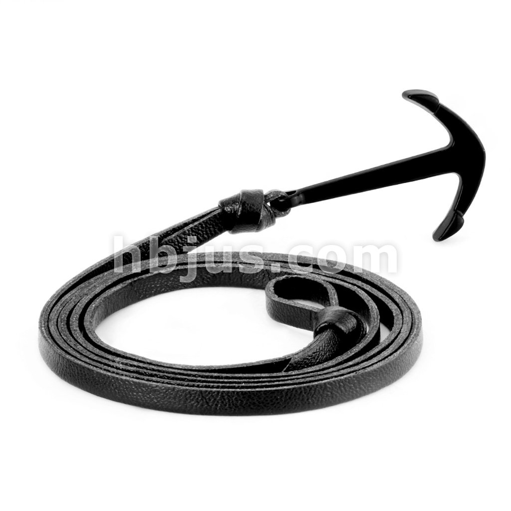 Black Plated Steel Anchor Adjustable Multi Strip Leatherette Bracelets