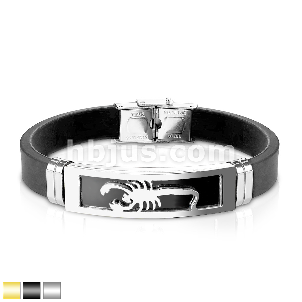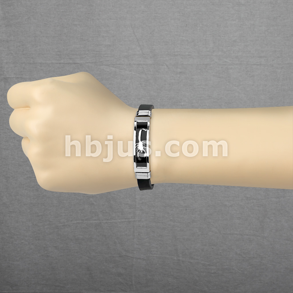 Scorpion Embossed Steel Plate With Silicon Rubber Strap Bracelet