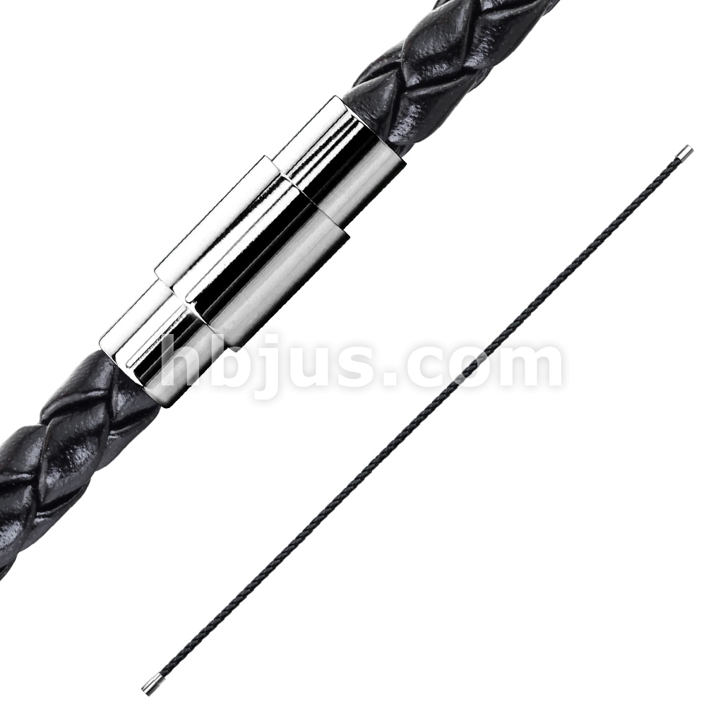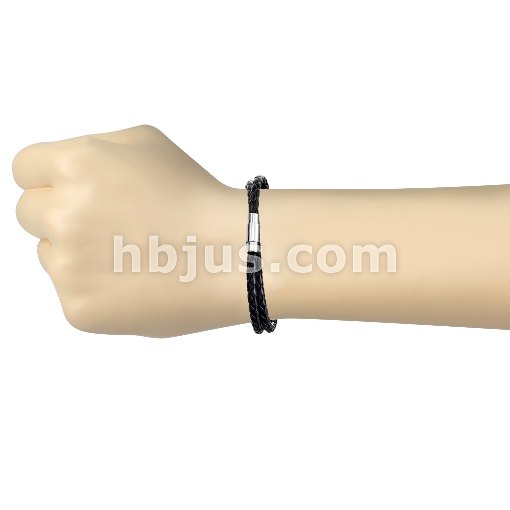 Double Wrap Black Bolo Braided Cord with Magnetic Stainless Steel Clasp Leather Bracelet