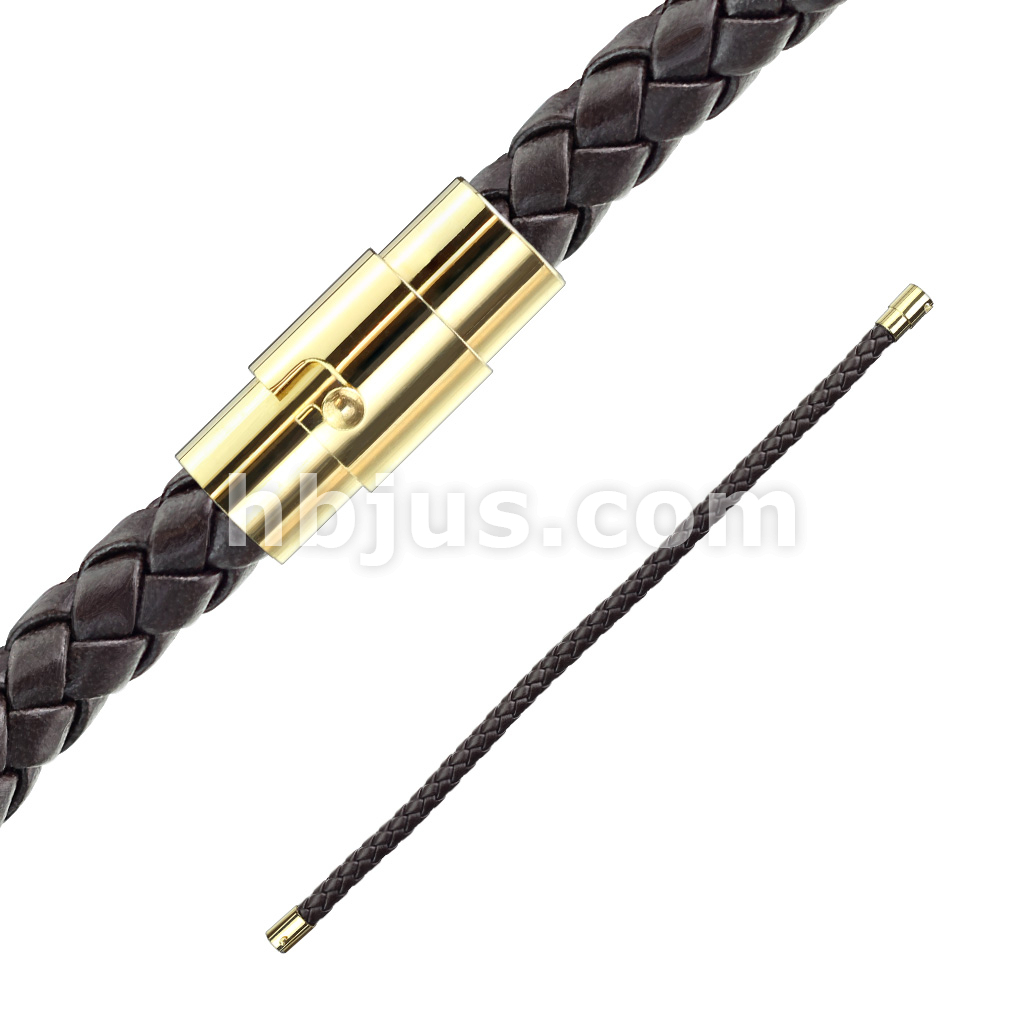 Dark Brown Bolo Braided Cord with Gold IP Magnetic Stainless Steel Clasp Leather Bracelet