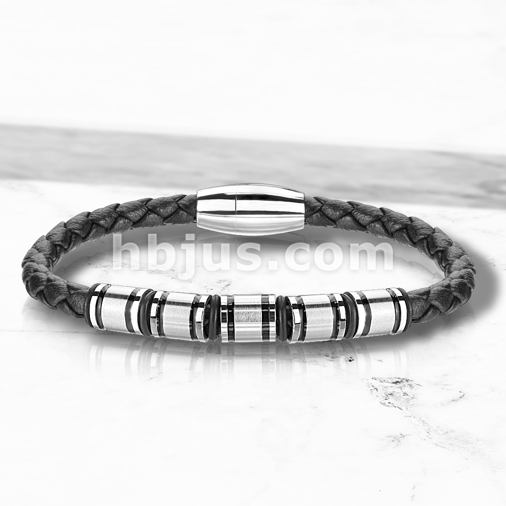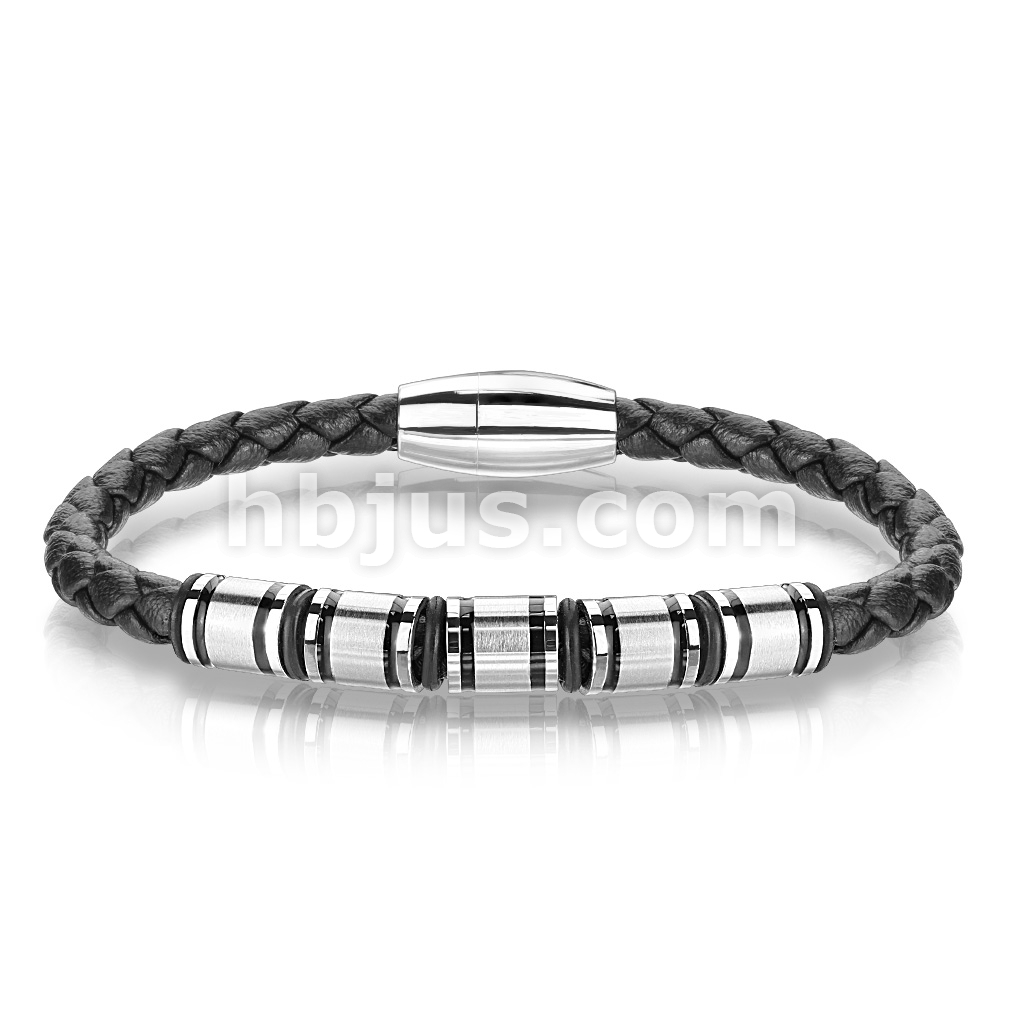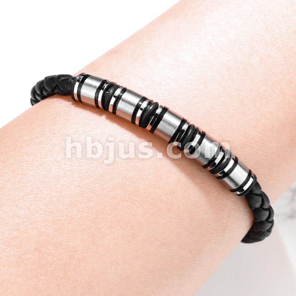 High Quality Black Micro Fiber Bolo Leather Cord and Stainless Steel Charm Bracelets