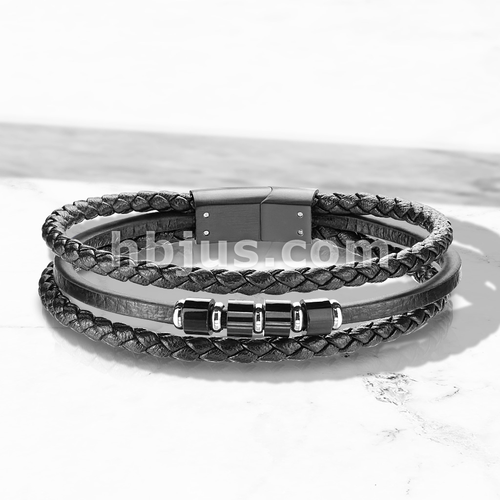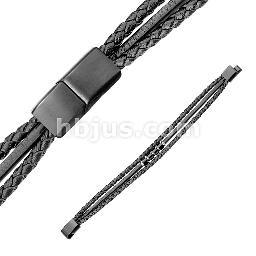 High Quality Multi Strand Black Micro Fiber Leather and Stainless Steel Unisex Bracelets