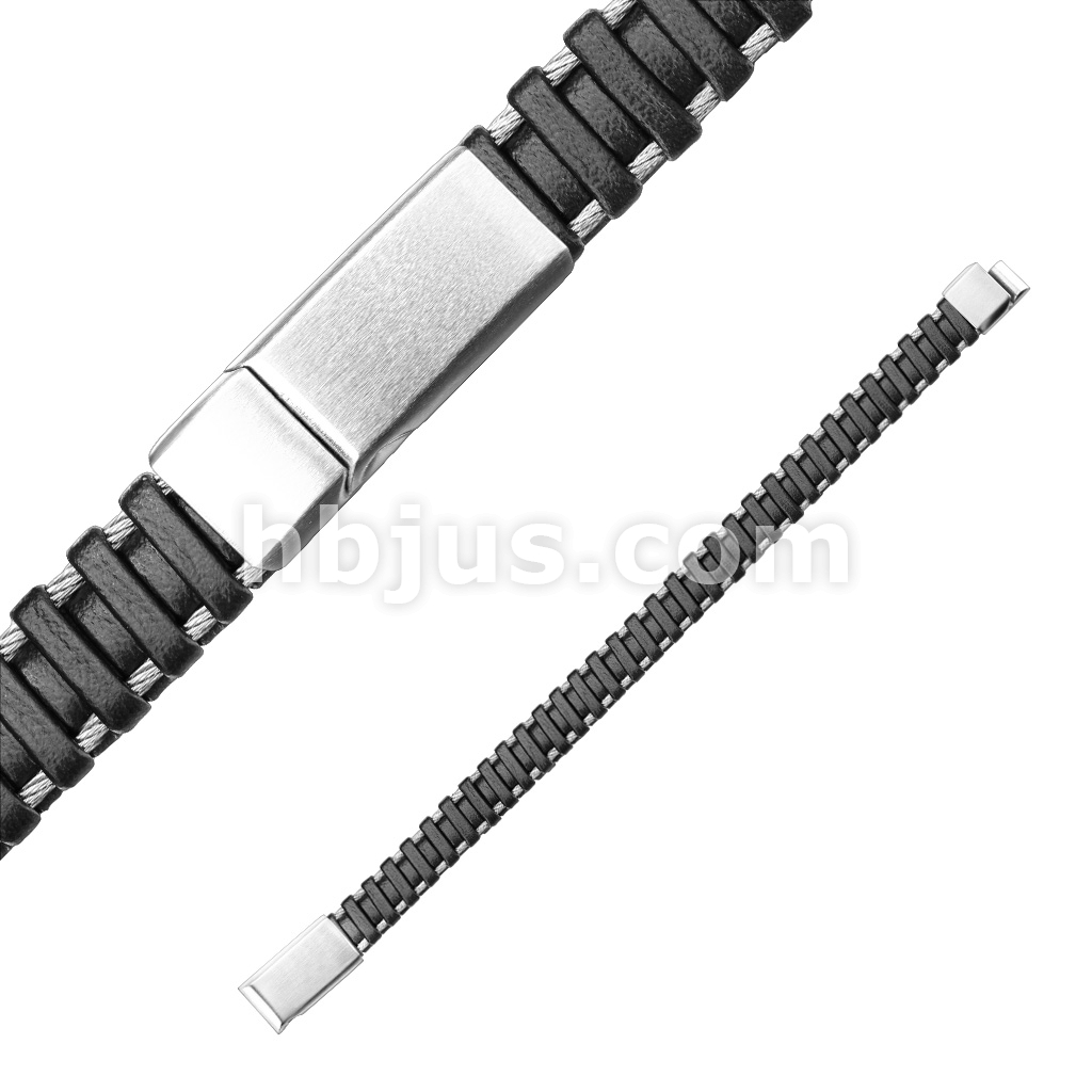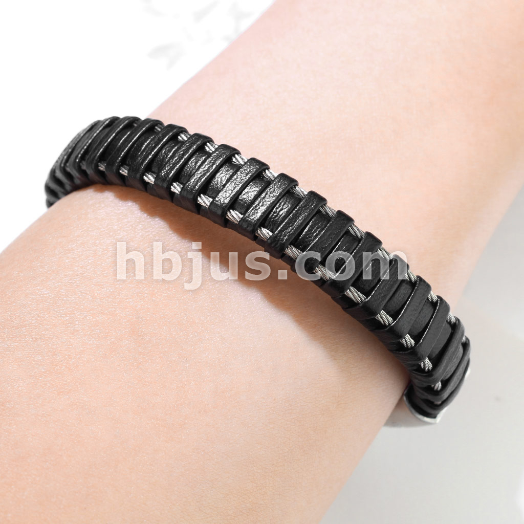 High Quality Black Micro Fiber Leather and Stainless Steel Mens Bracelets