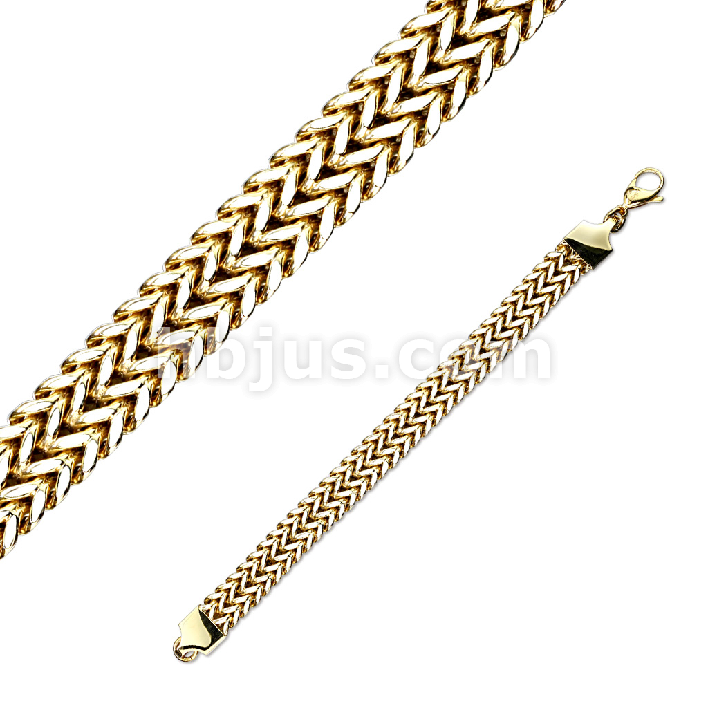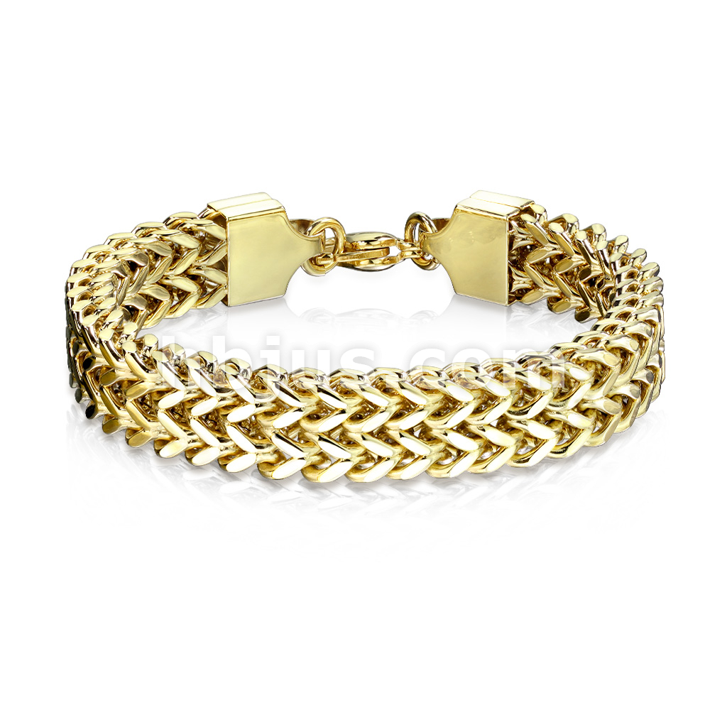 Gold Double Row Wheat Chain Stainless Steel Bracelet