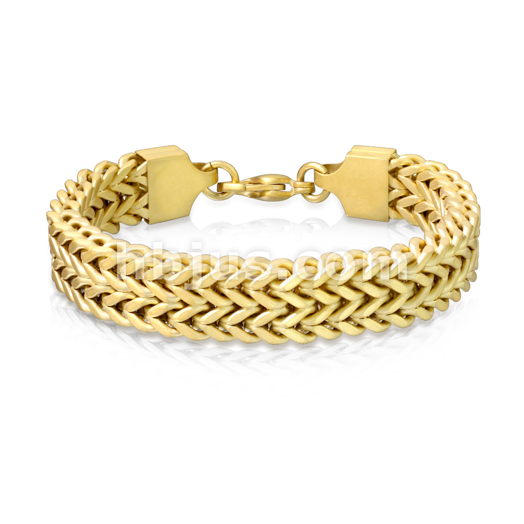 Matte Gold Double Row Wheat Chain Stainless Steel Bracelet