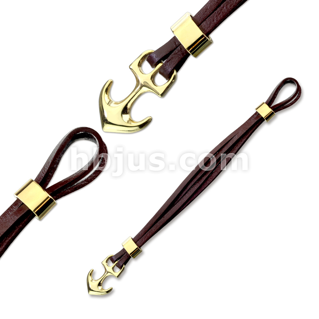 Gold Plated 316L Surgical Steel Steel Anchor Hook Adjustable Multi Strip PU Leatherette Bracelets