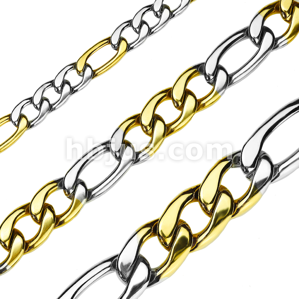 Combination of Small Steel and Large Gold Links Stainless Steel Chain Bracelet with Lobster Clasp