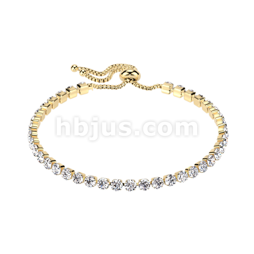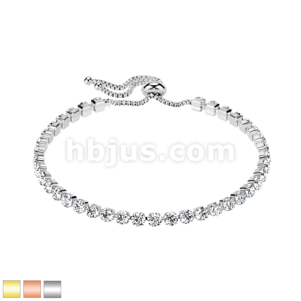 Adjustable Stainless Steel Tennis Bracelet With Prong Set CZ