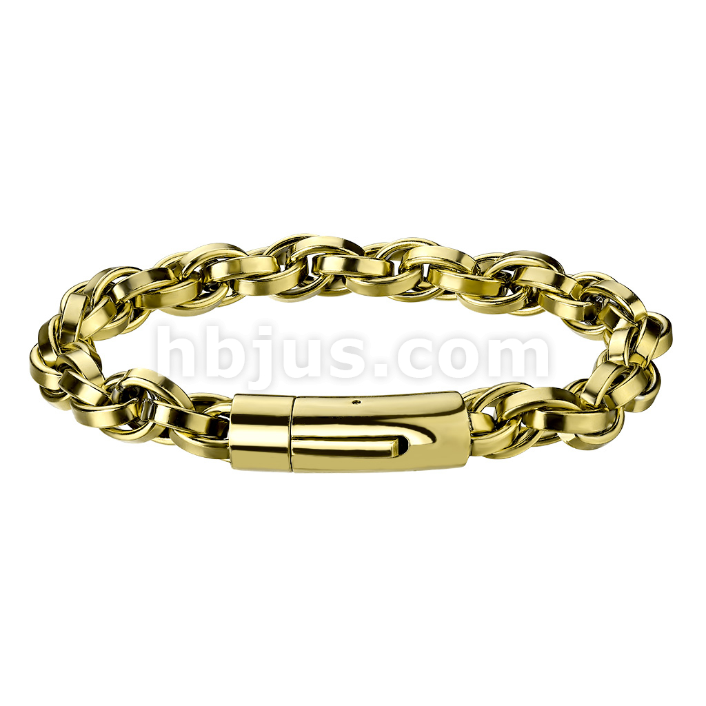 Stainless Steel Multilink Rope Chain Bracelet With Catch Lock Clasp