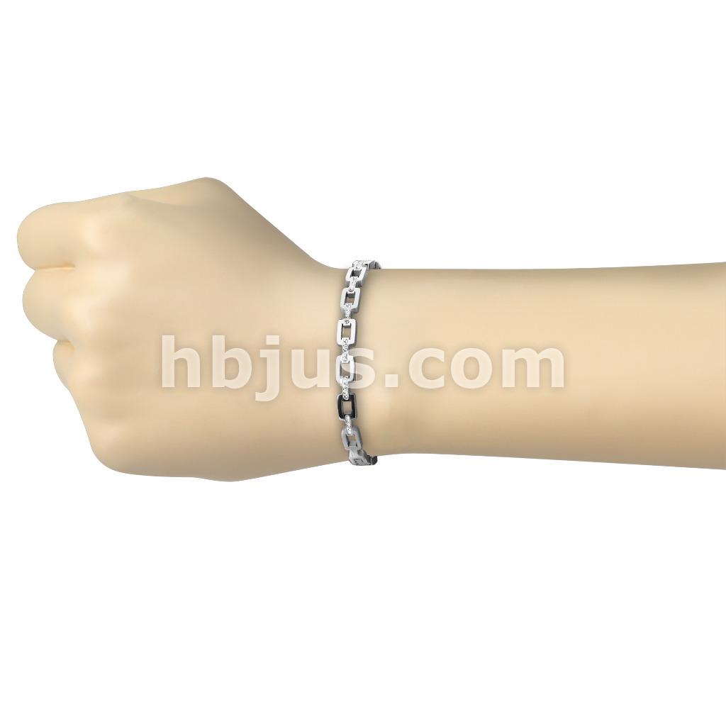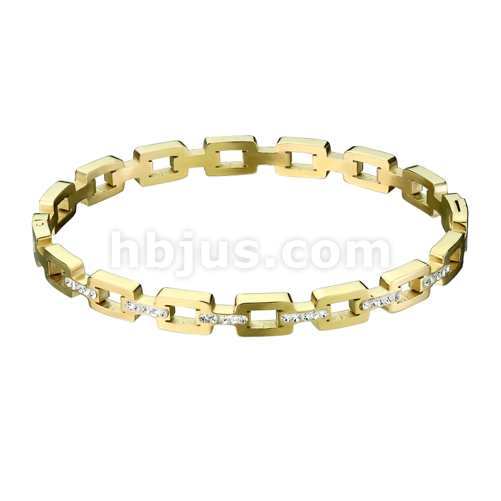 Stainless Steel Pave CZ Square Link Bangle Bracelet