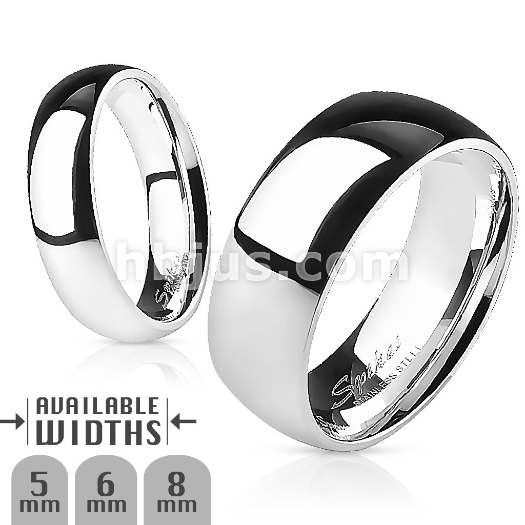 Assorted Sizes of 316L Stainless Steel Glossy Mirror Polished Traditional Wedding Band Ring