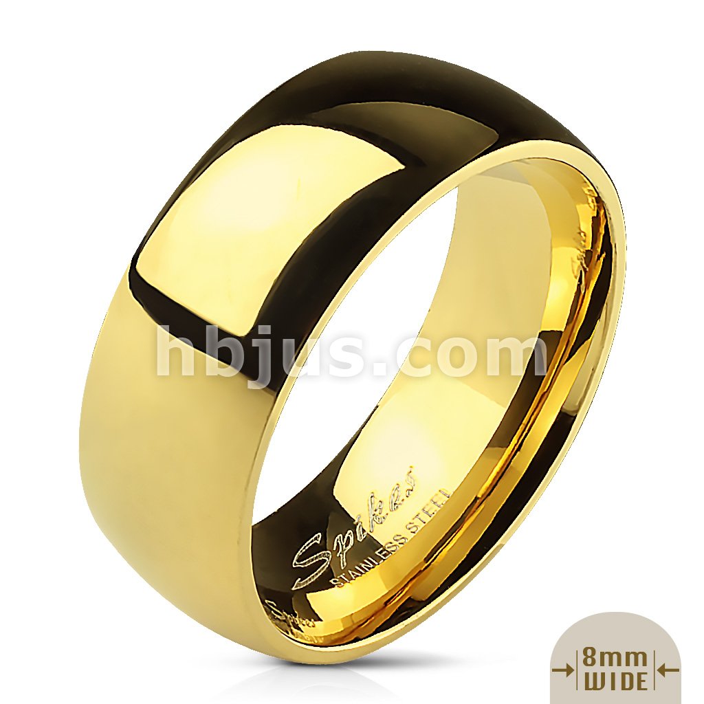 Assorted Sizes of 316L Stainless Steel Gold IP Glossy Mirror Polished Traditional Wedding Band Ring