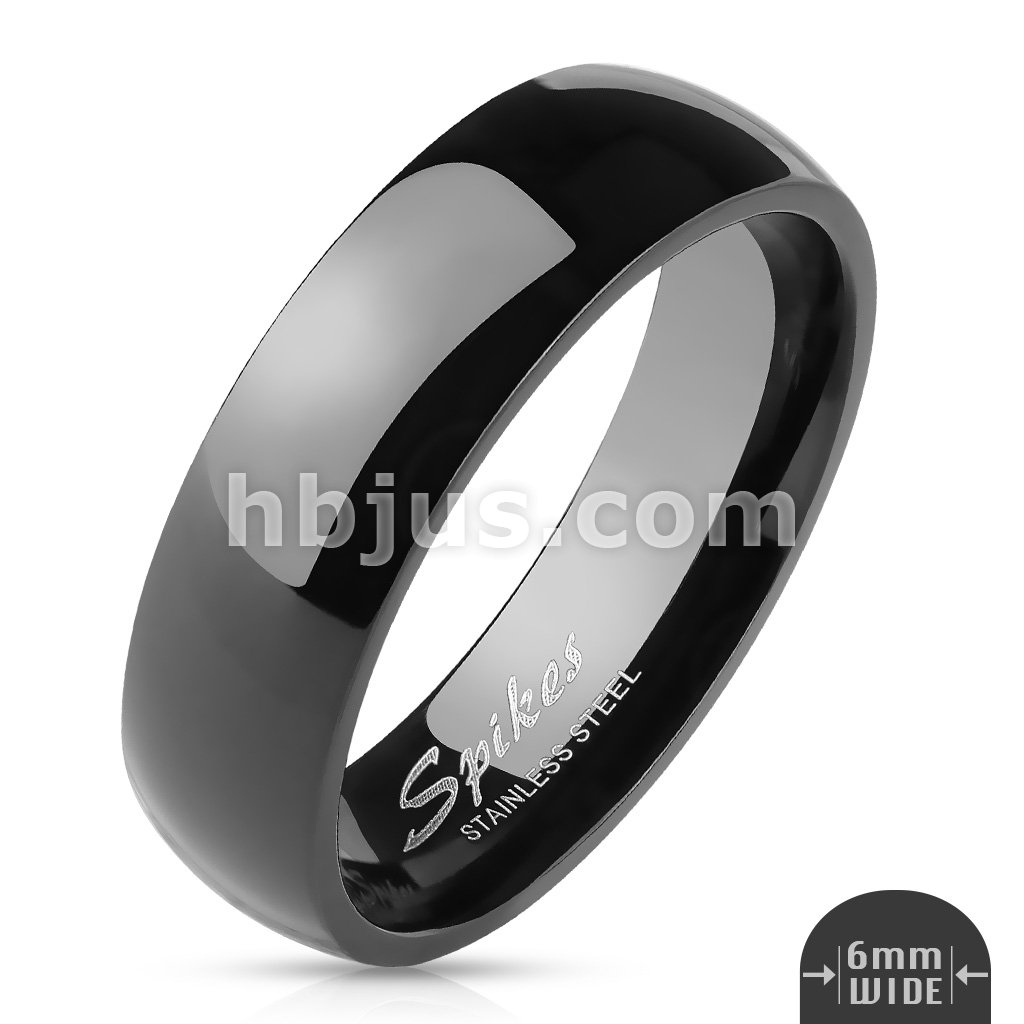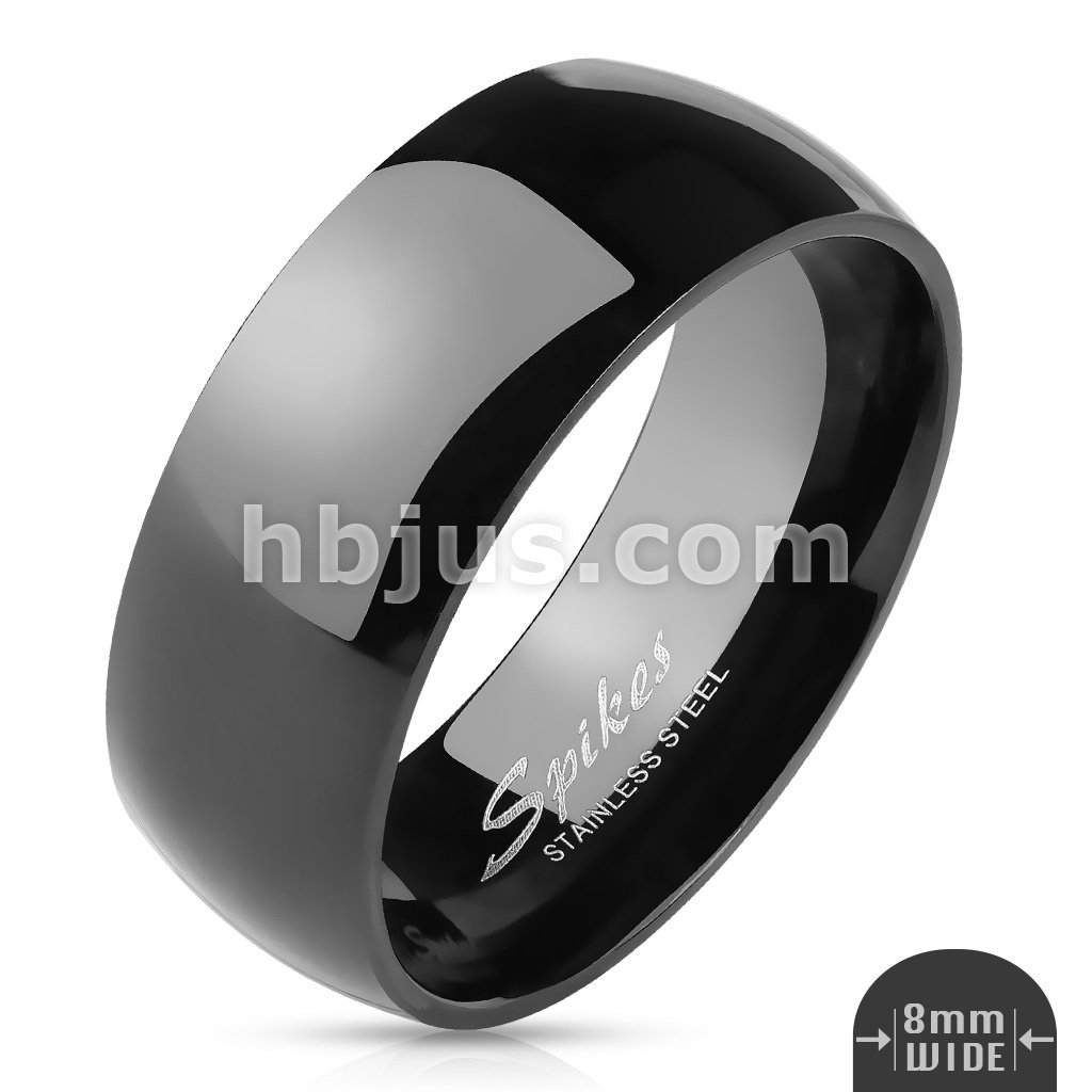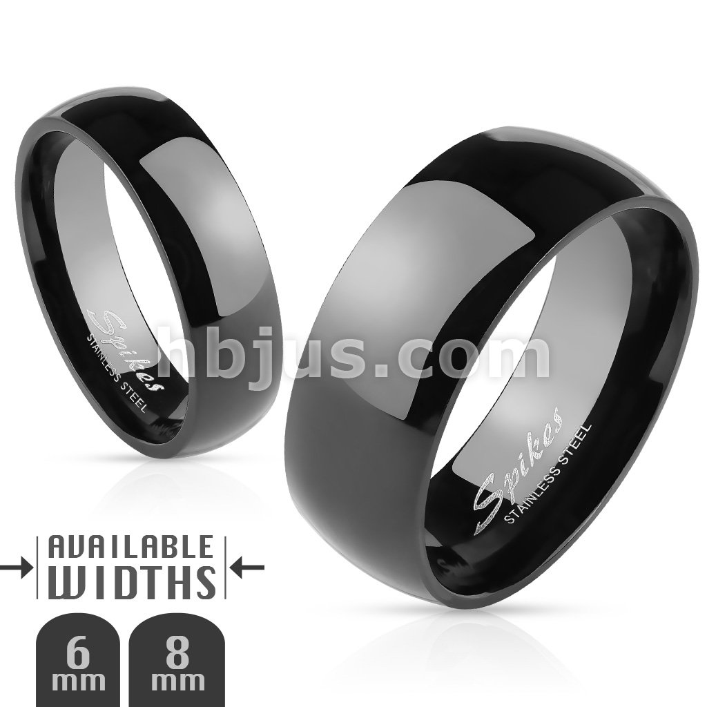 Assorted Sizes of 316L Stainless Steel Glossy Mirror Polished Black IP Dome Band Ring