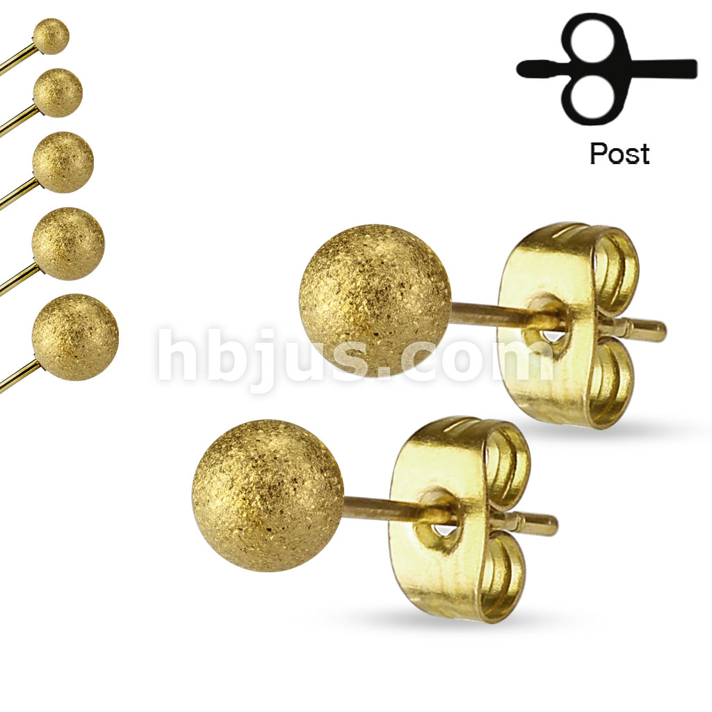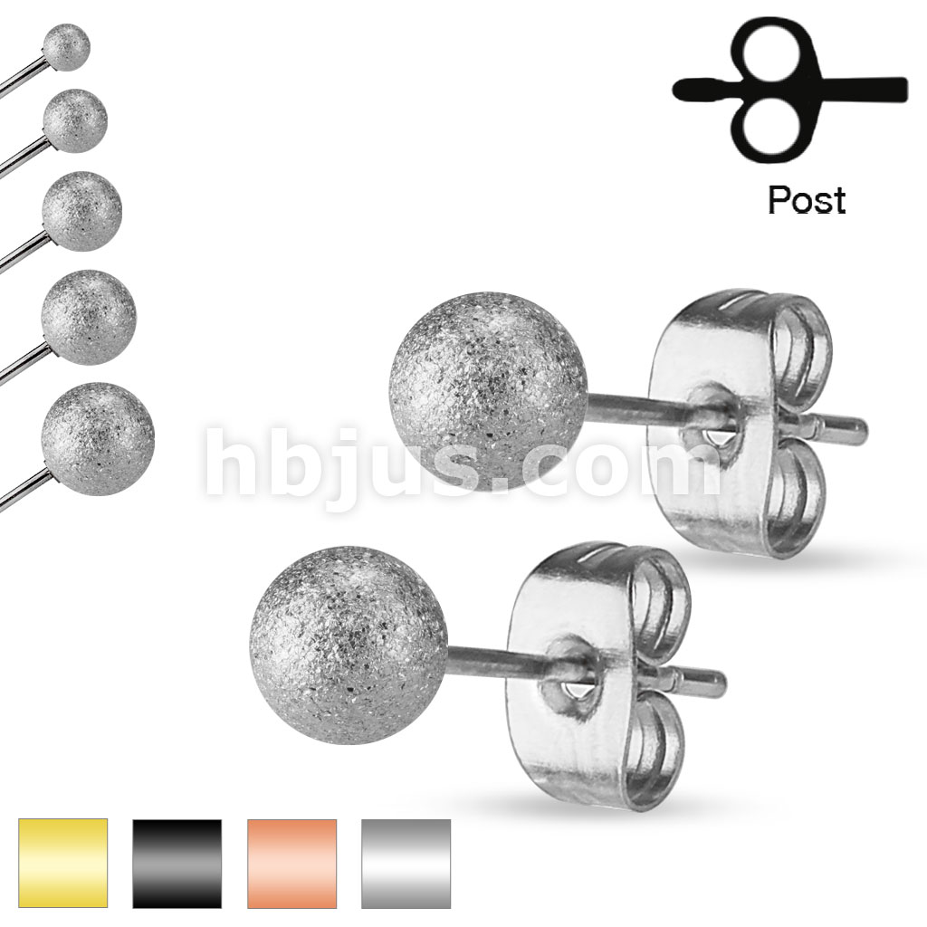 30 Pairs of Sand Blast Finish Ball Ear Stud Rings Bulk Pack (6 Pairs X 5 Sizes = 30 Pairs)