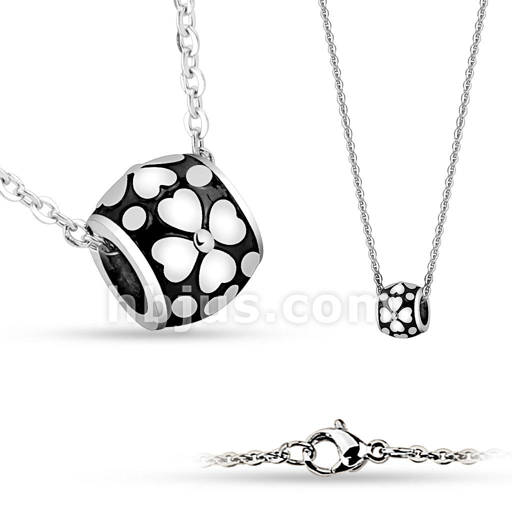 Shiny Shamrock on Black 316L Stainless Steel Pendant with Chain
