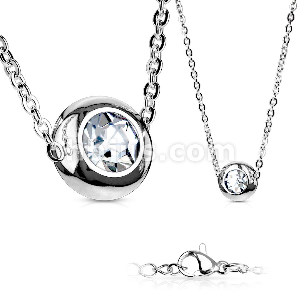 Solitaire CZ Round 316L Stainless Steel Pendant with Chain