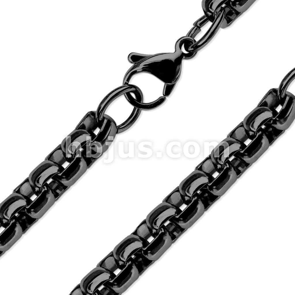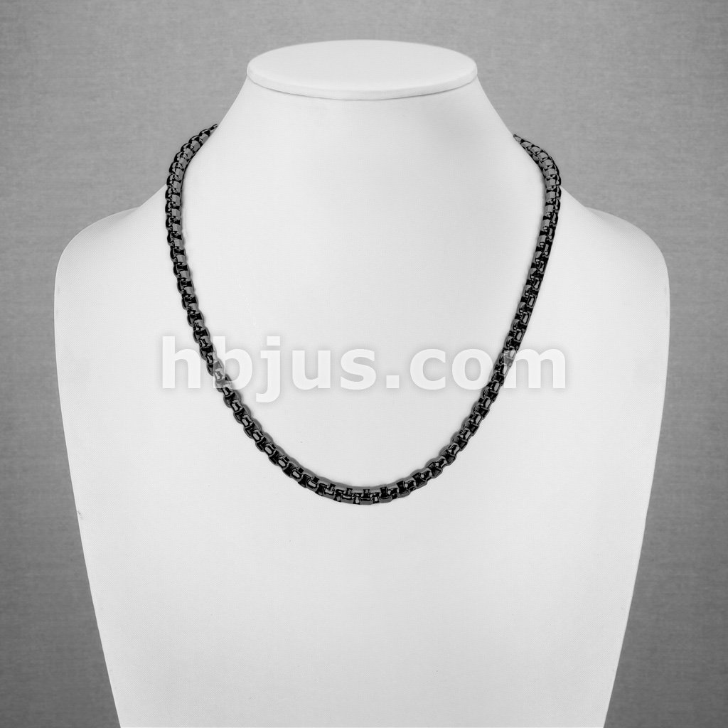 Black PVD Stainless Steel Round Box Chain Necklaces
