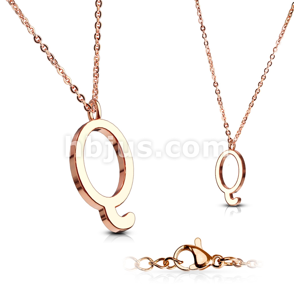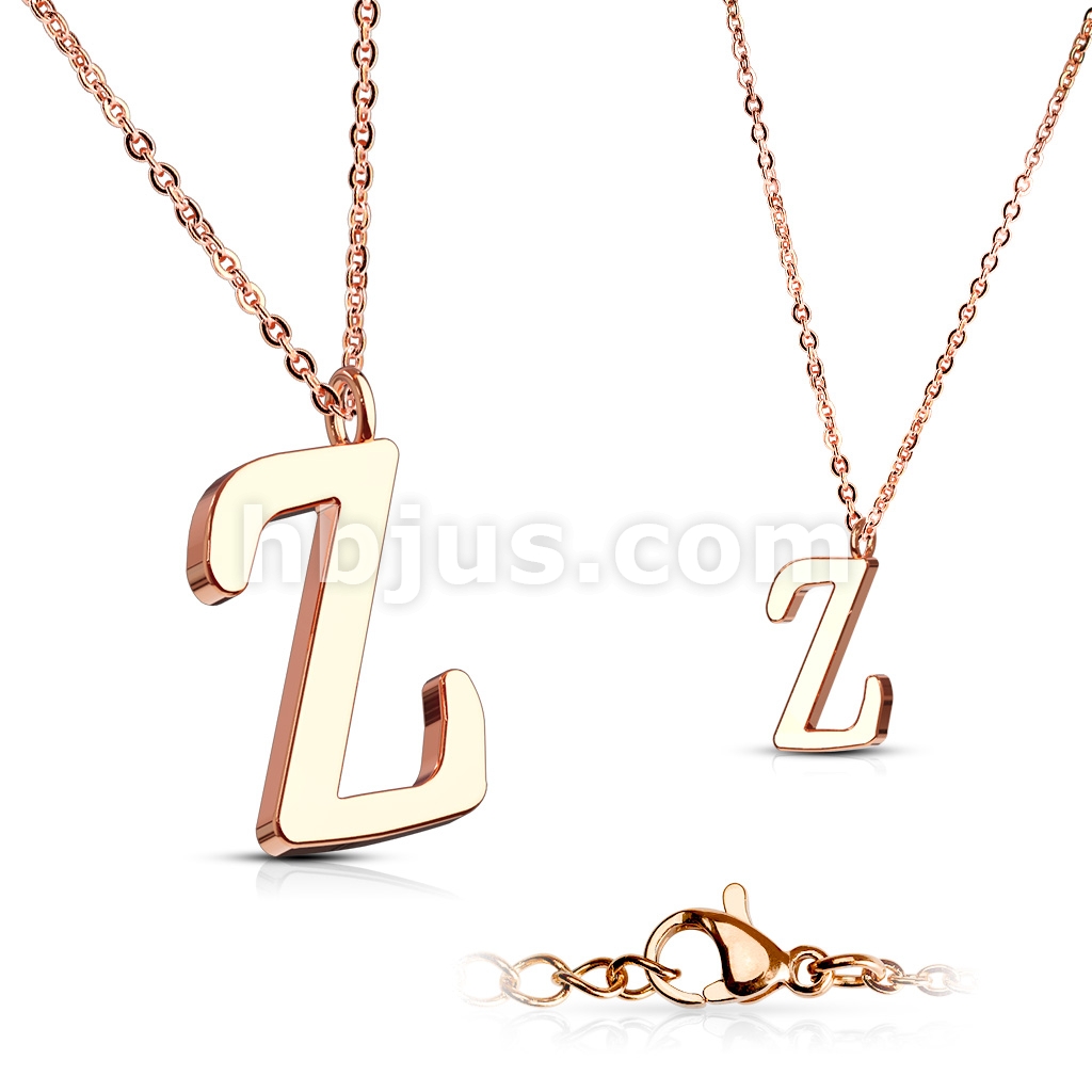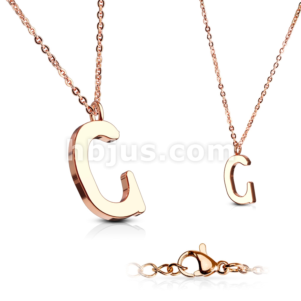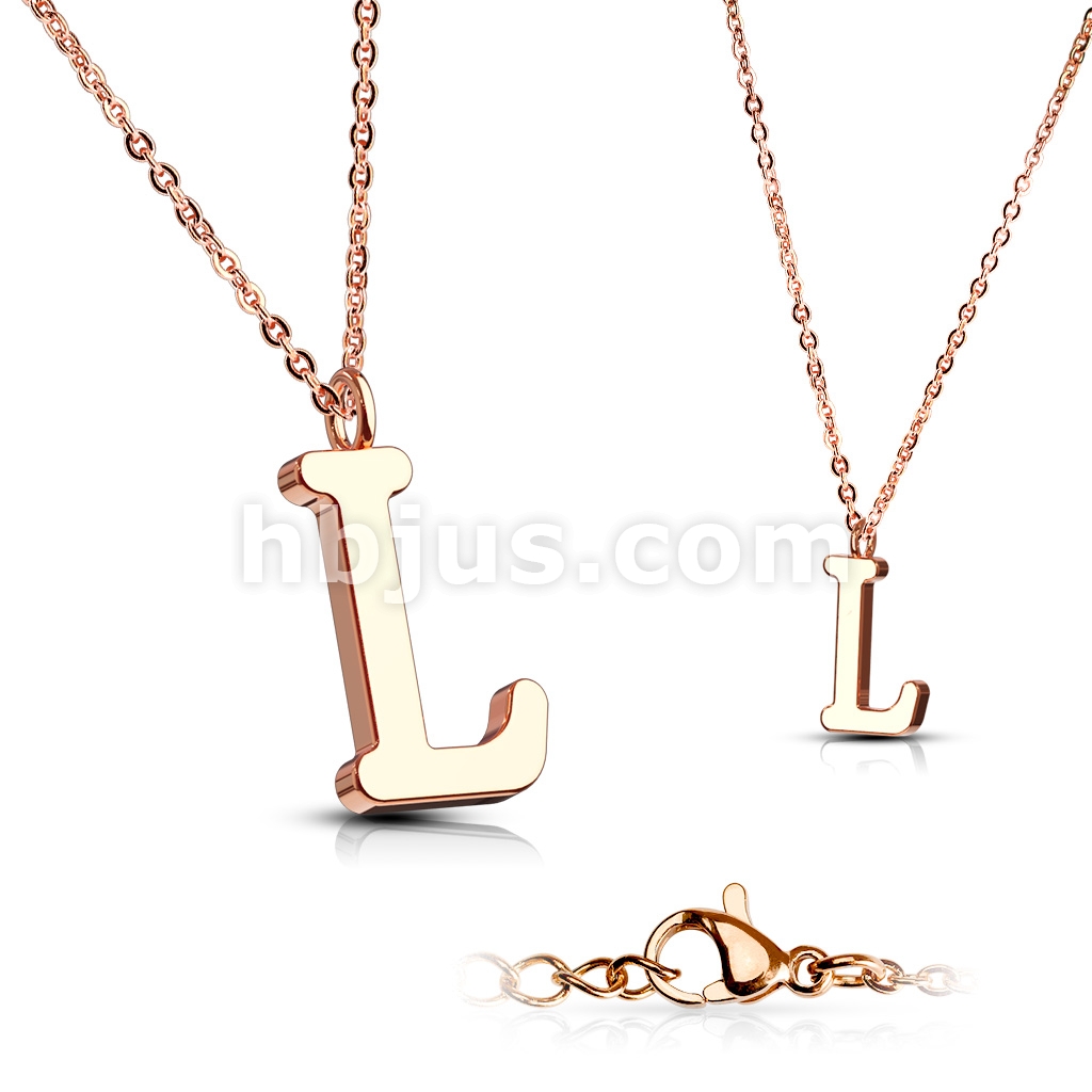 Rose Gold IP Alphabet Initial 316L Stainless Steel Pendant with Chain