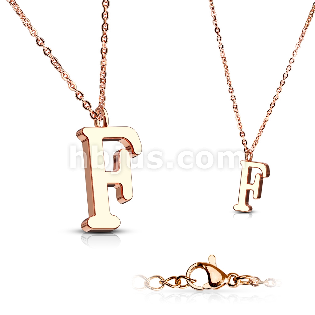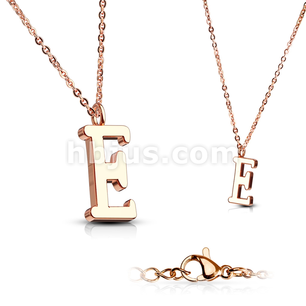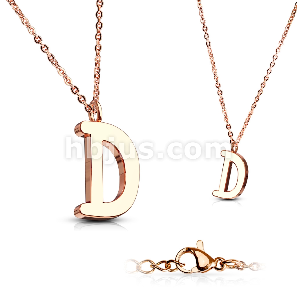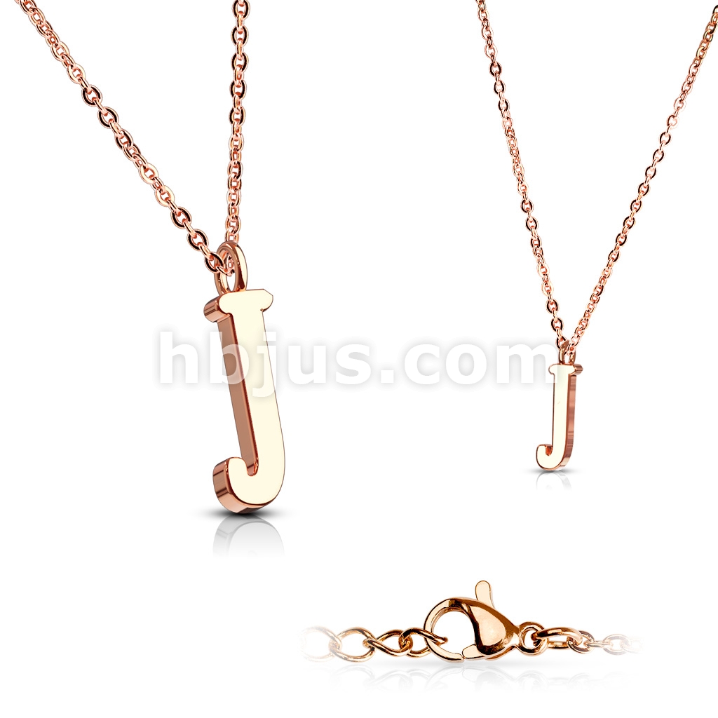 Rose Gold IP Alphabet Initial 316L Stainless Steel Pendant with Chain