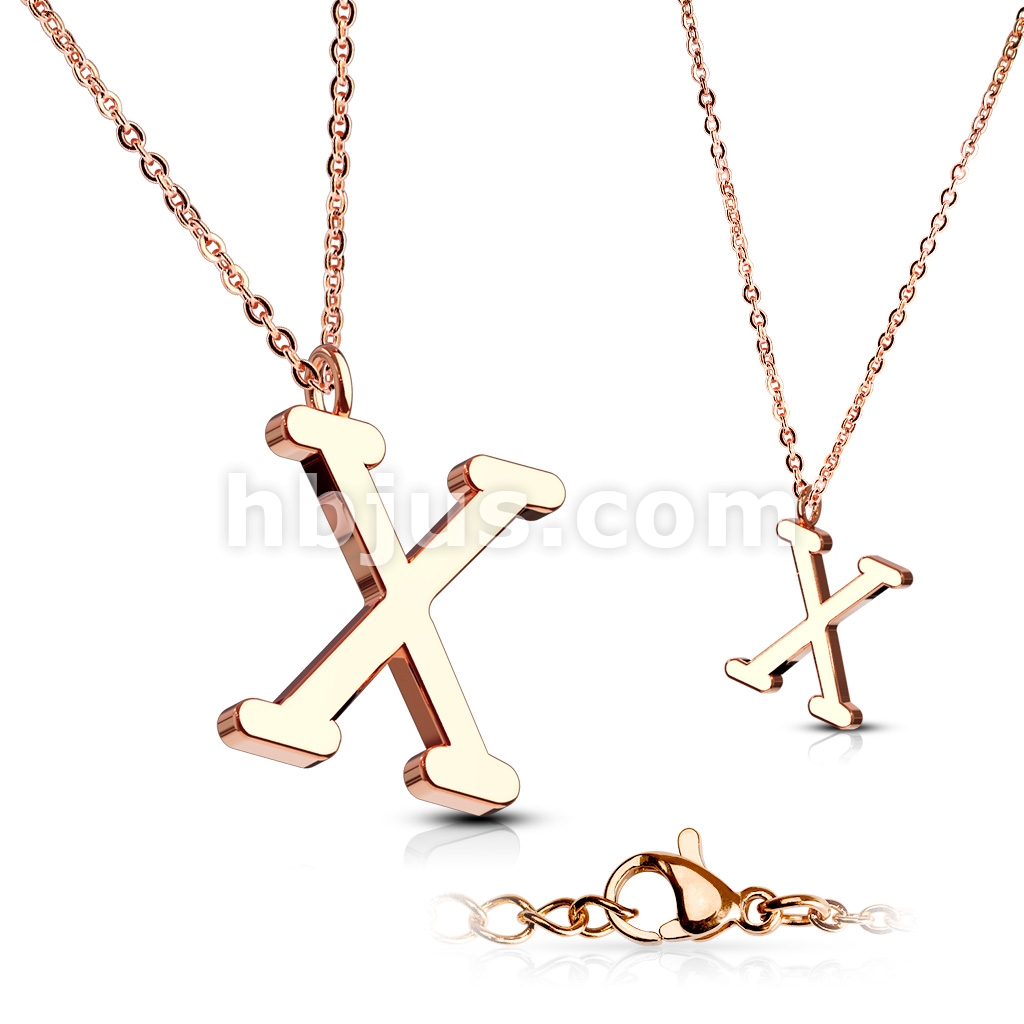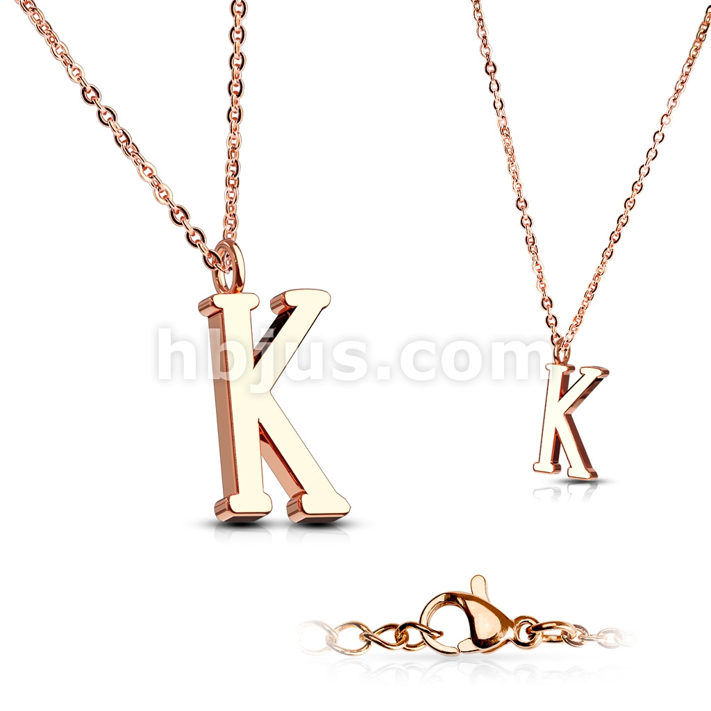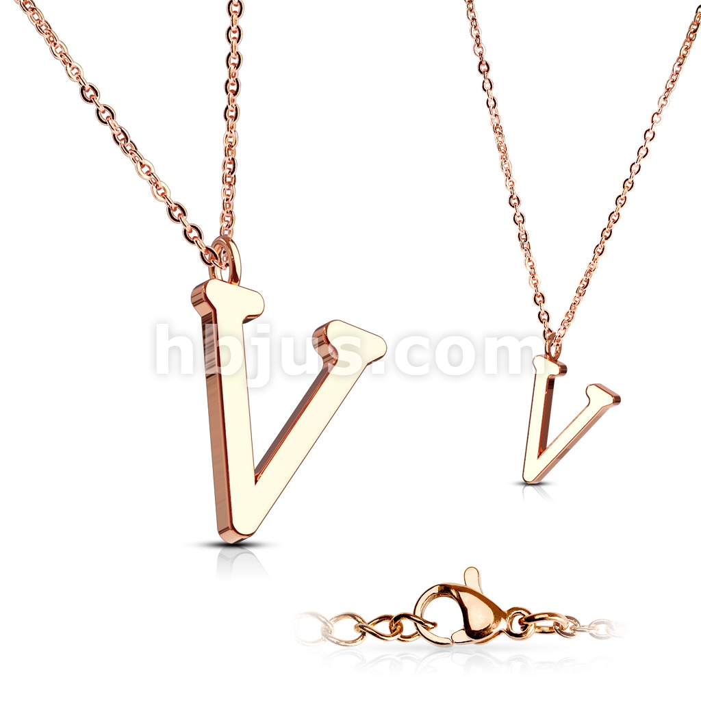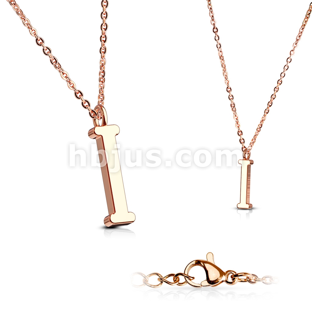 Rose Gold IP Alphabet Initial 316L Stainless Steel Pendant with Chain
