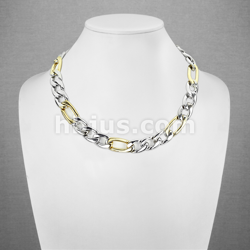 Combination of Small Steel and Large Gold Links Stainless Steel Chain Necklace With Lobster Clasp