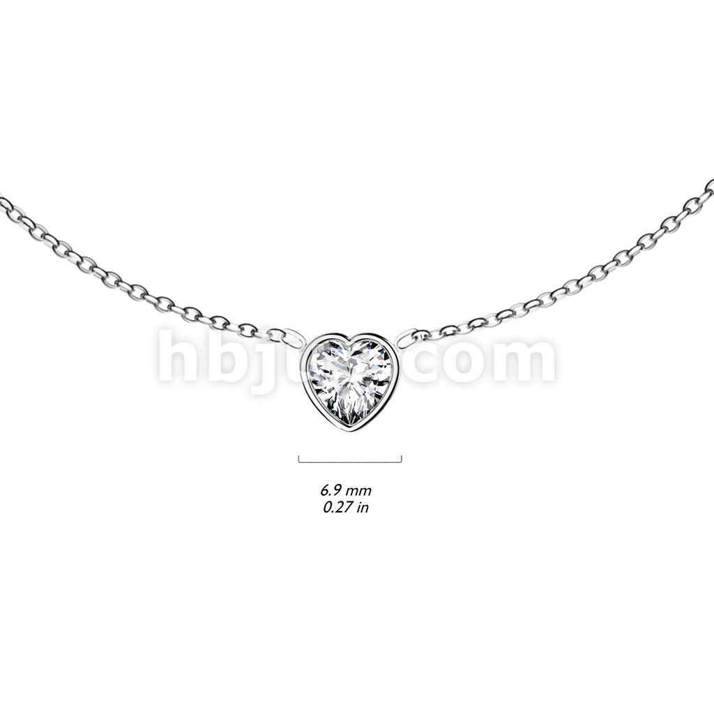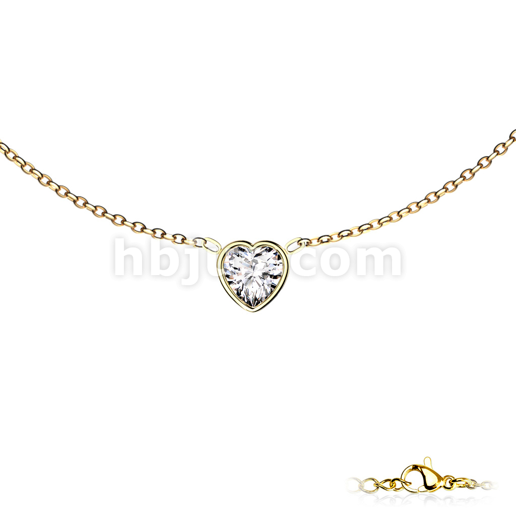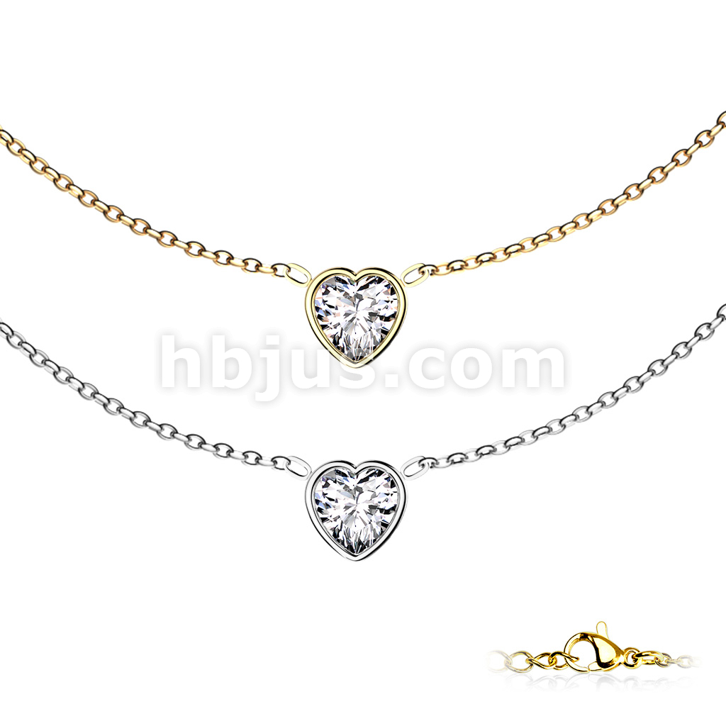 Heart Bezel Set CZ Pendant With Stainless Steel Chain Necklace