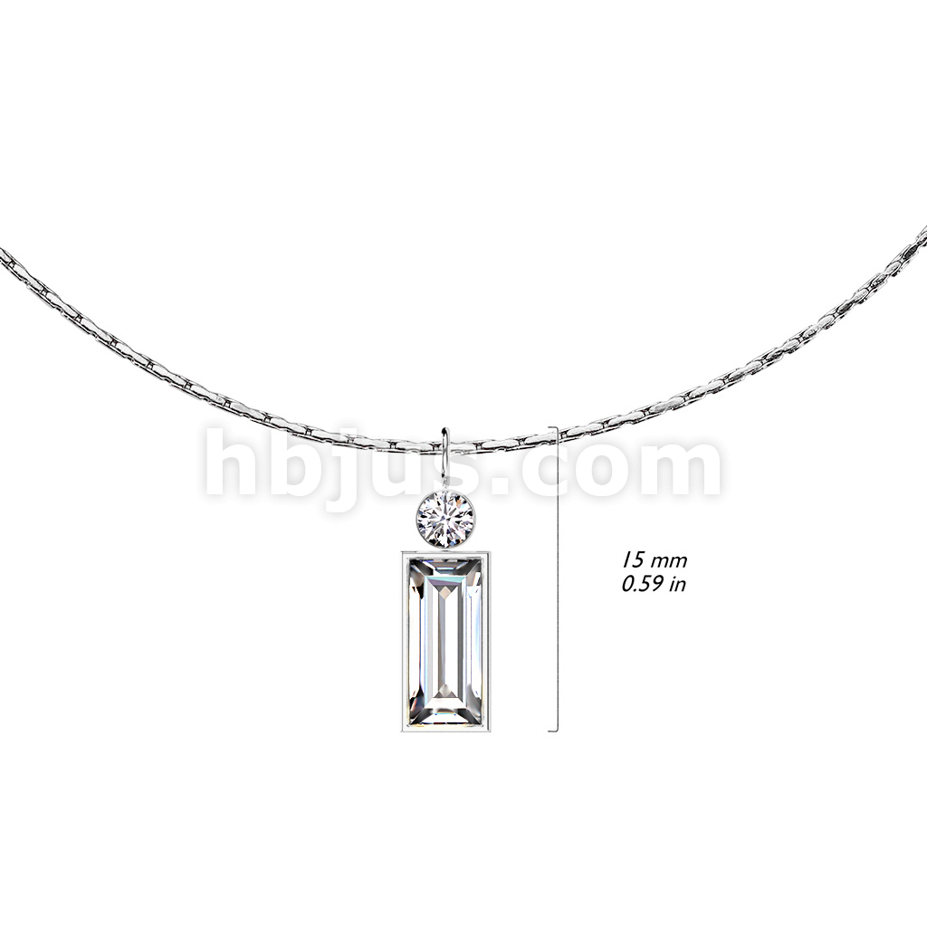 Baguette CZ Pendant With Bezel Set CZ Top Stainless Steel Chain Necklace