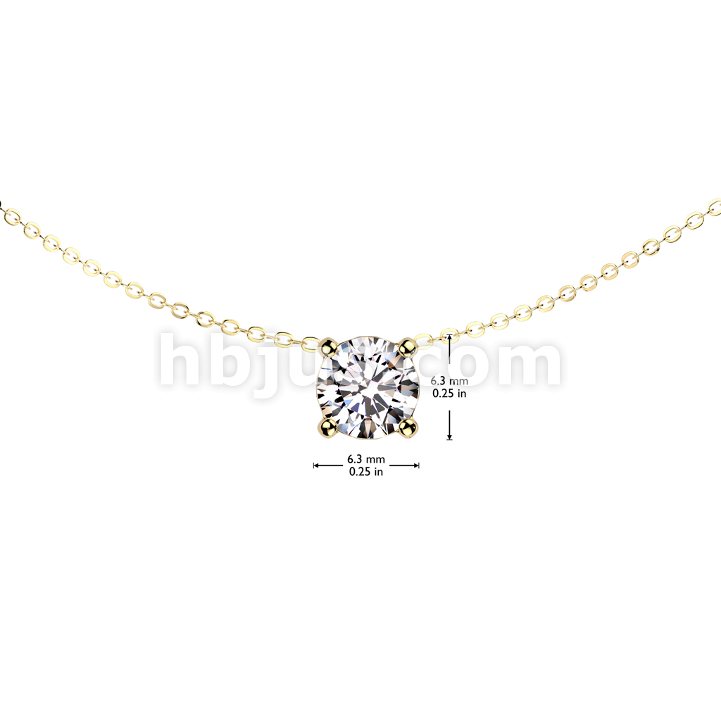 Round CZ Prong Set Pendant Stainless Steel Chain Necklace