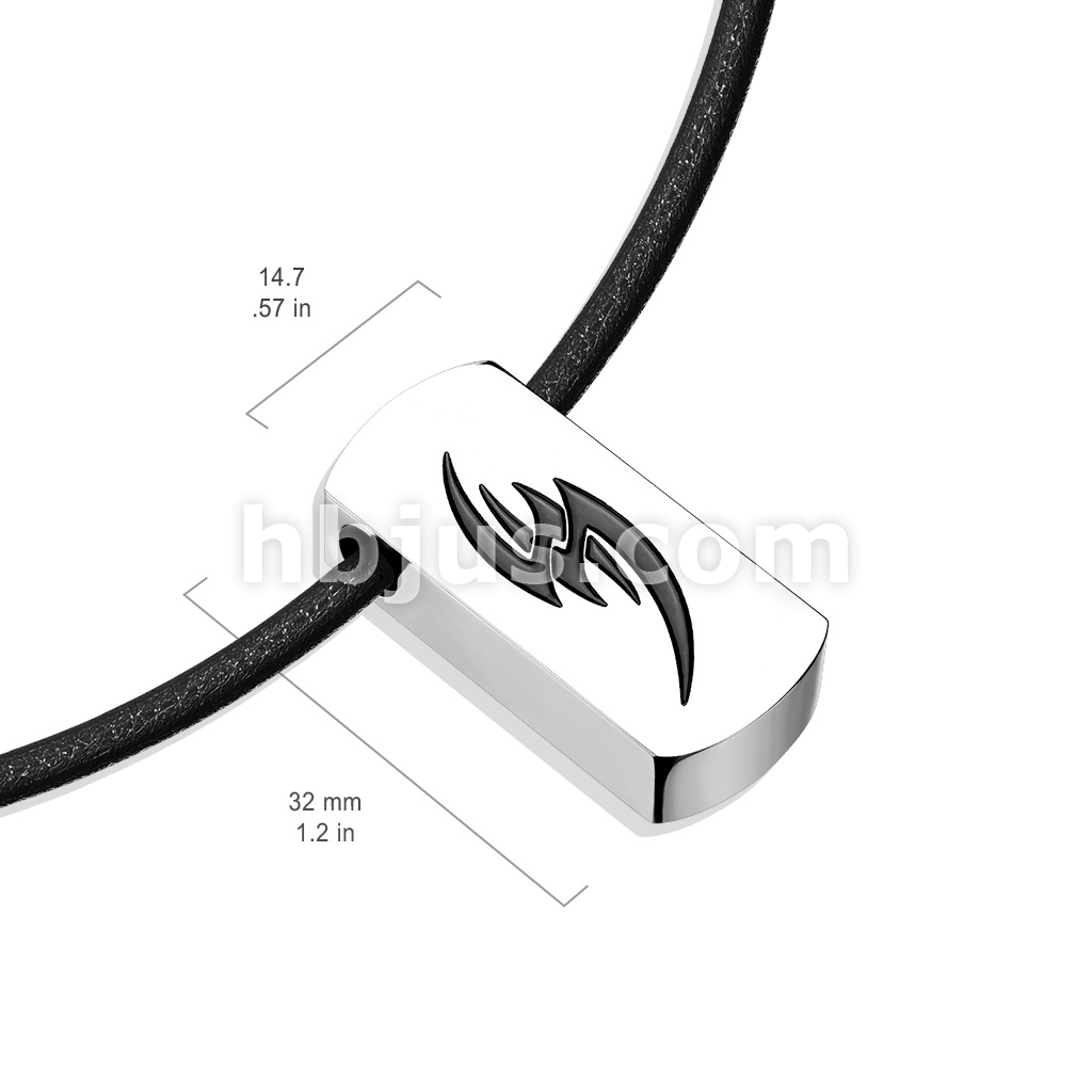 Tribal Fang Beveled Black IP 316L Stainless Steel Tag Pendant With Black Leatherette Necklace