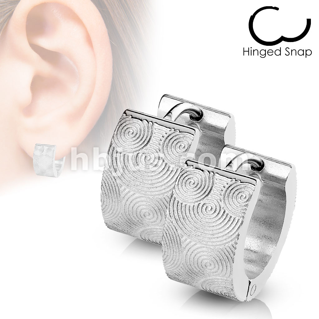 Pair of 316L Surgical Stainless Steel Hoop Earring with Brushed Steel Grooved Spirals