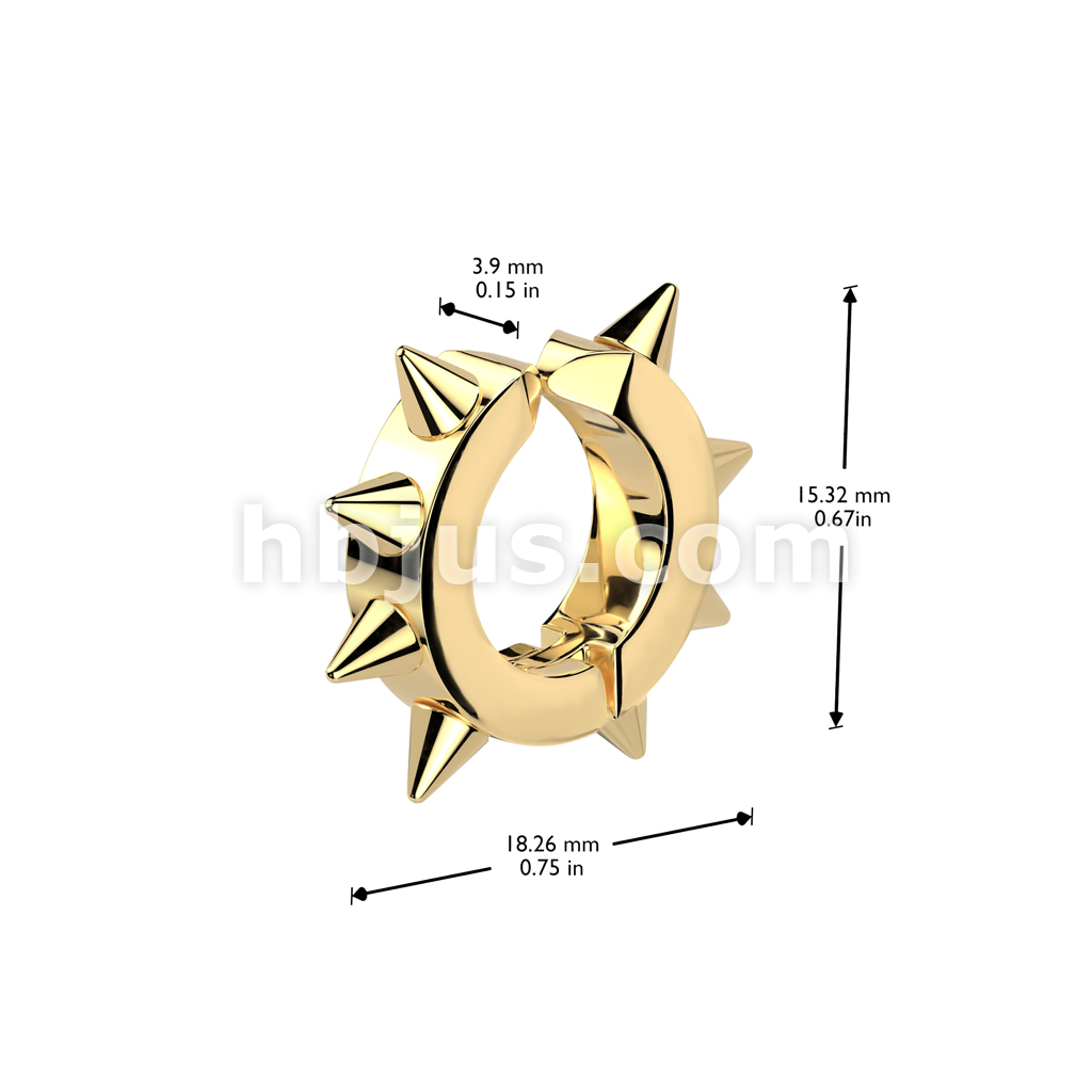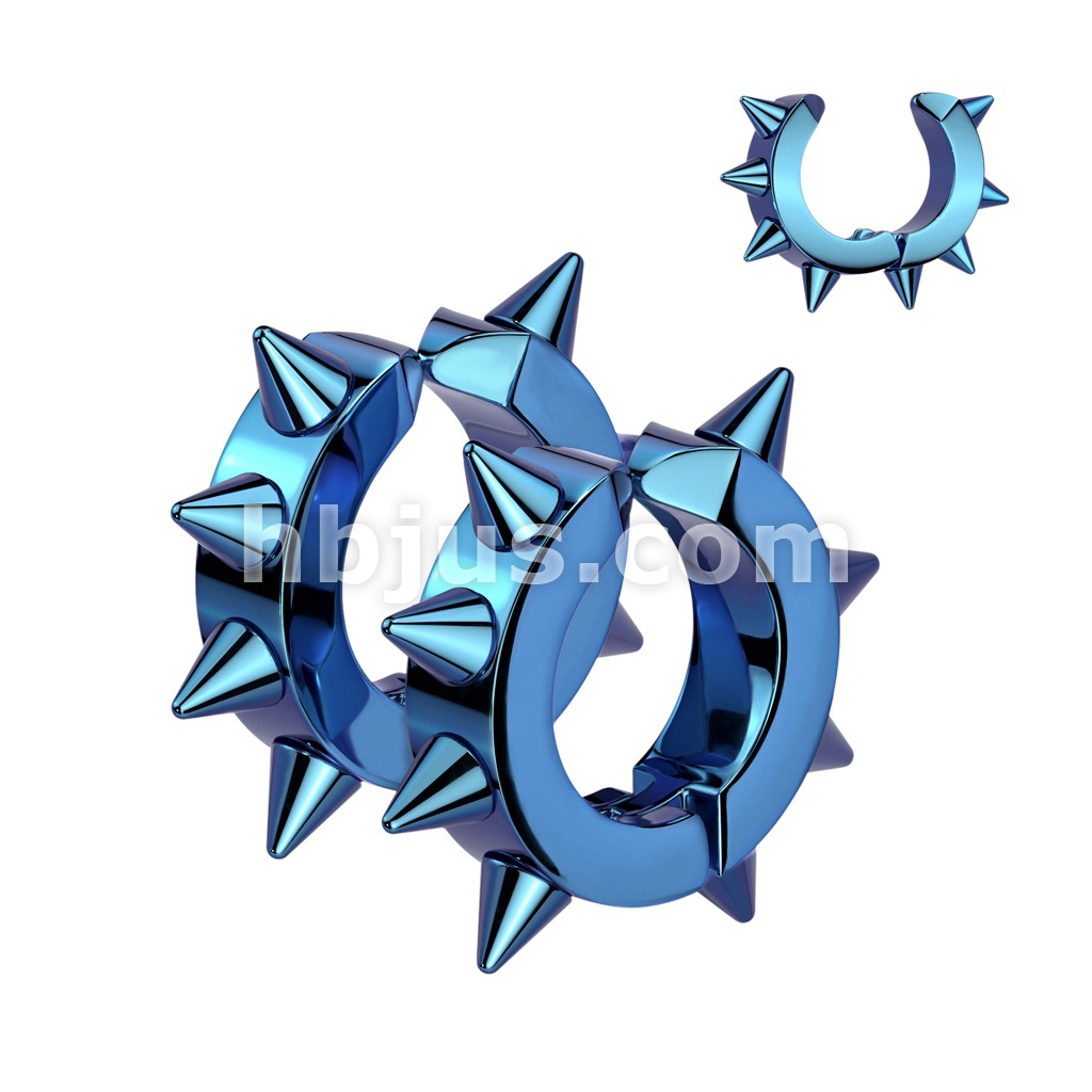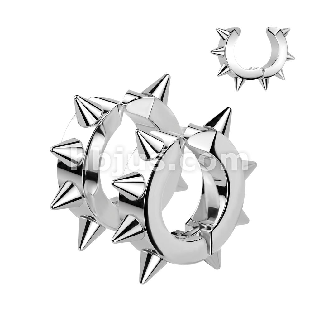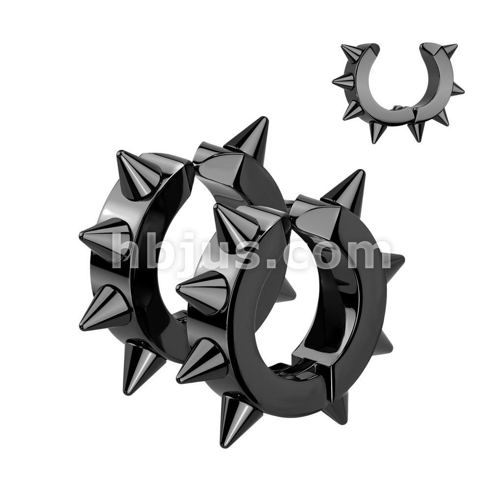 Oval Hoop Pair of 316L Surgical Stainless Steel IP Non Piercing Ear Cuff Clip On Earrings with Spikes