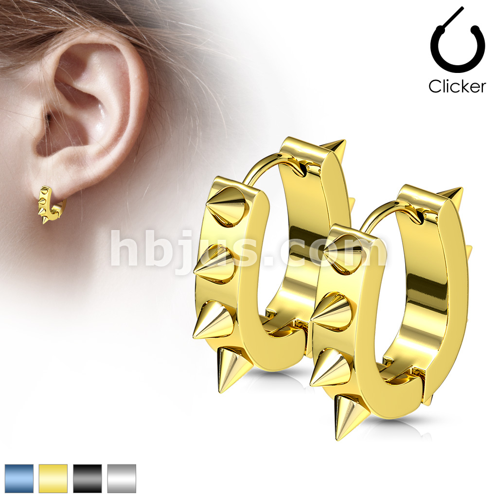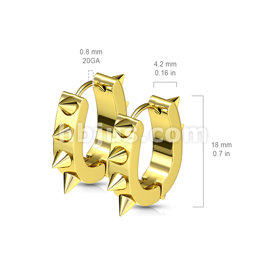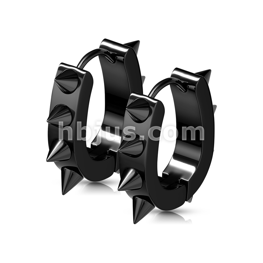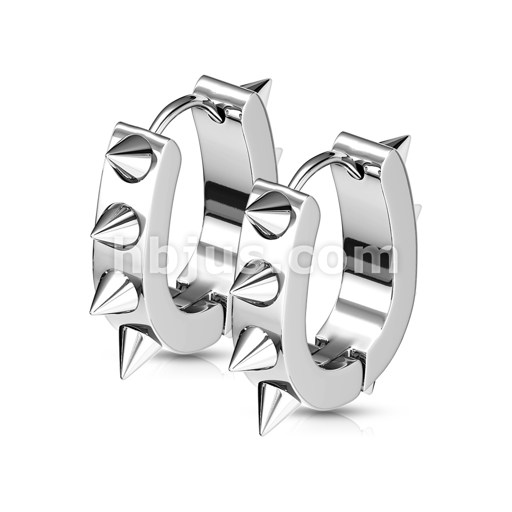 Pair of 316L Surgical Stainless Steel IP U Shaped Hoop Earrings With Spikes