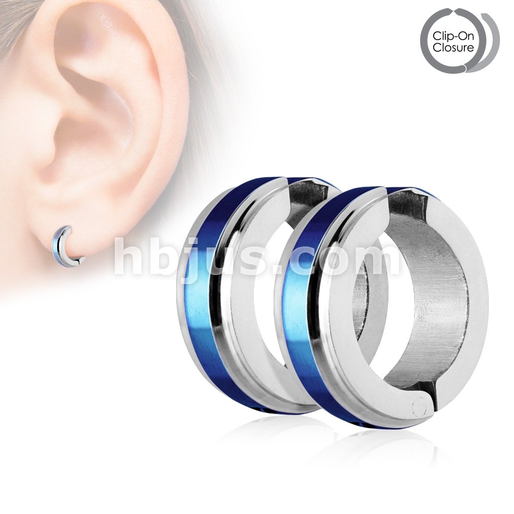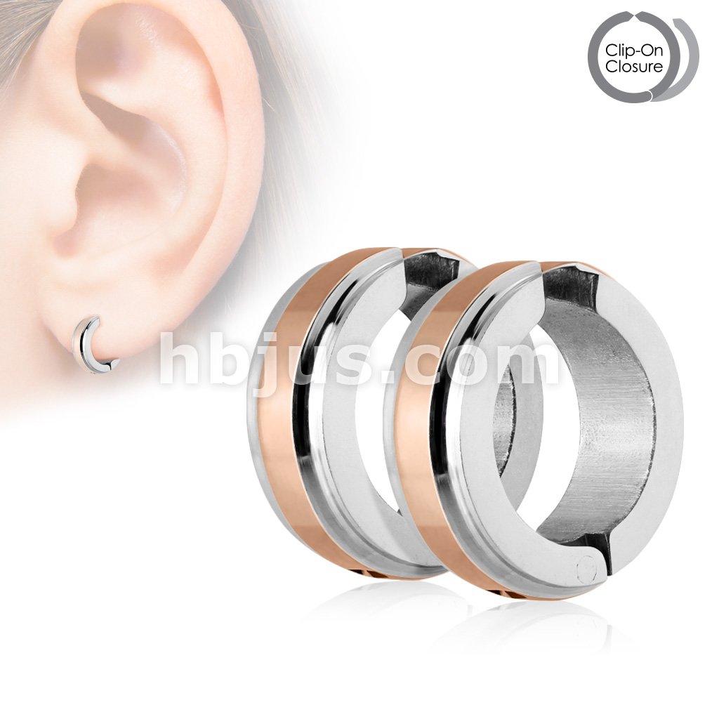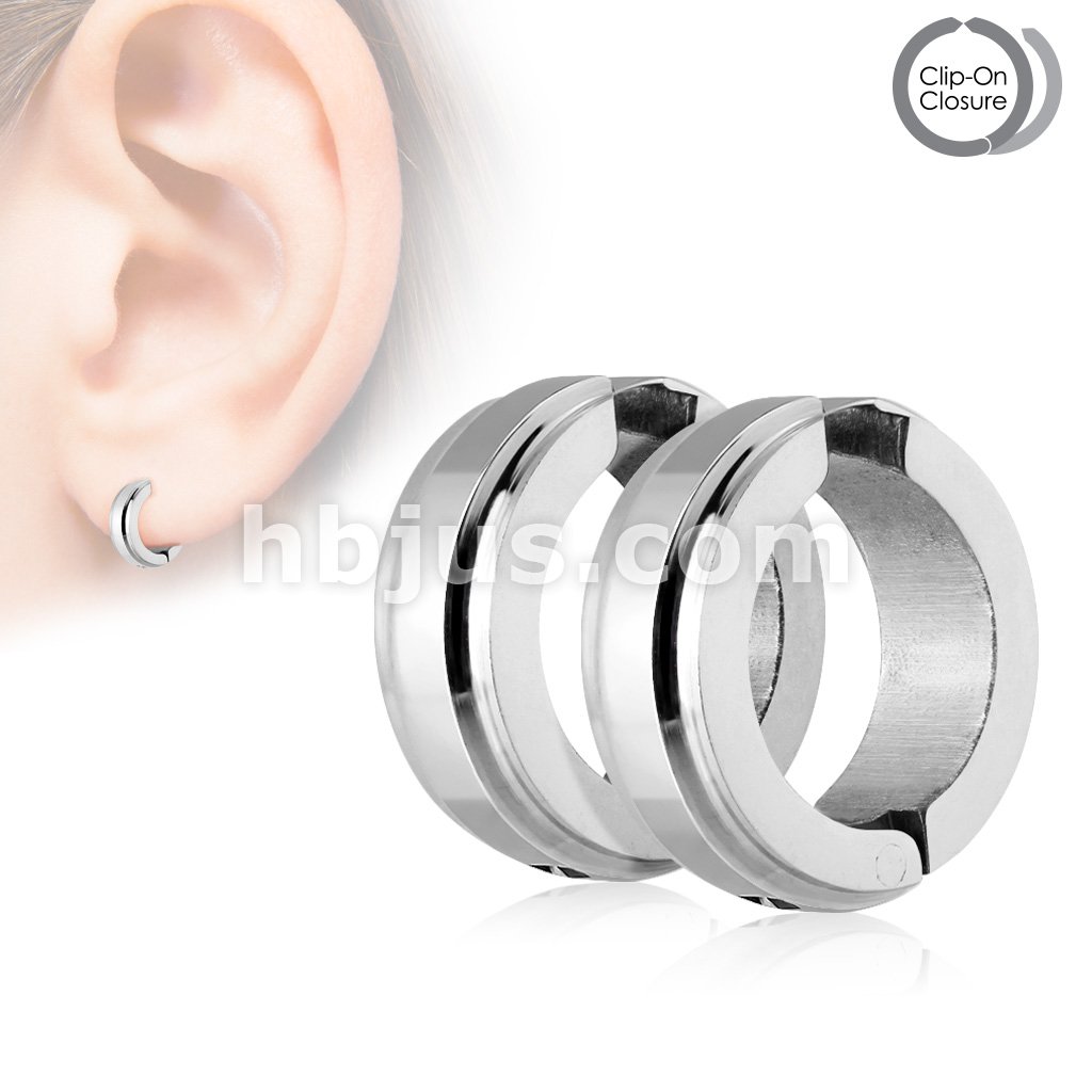 IP Center and Stepped Edges Pair of 316L Surgical Stainless Steel Non-Piercing Ear Cuff Clip On Earrings