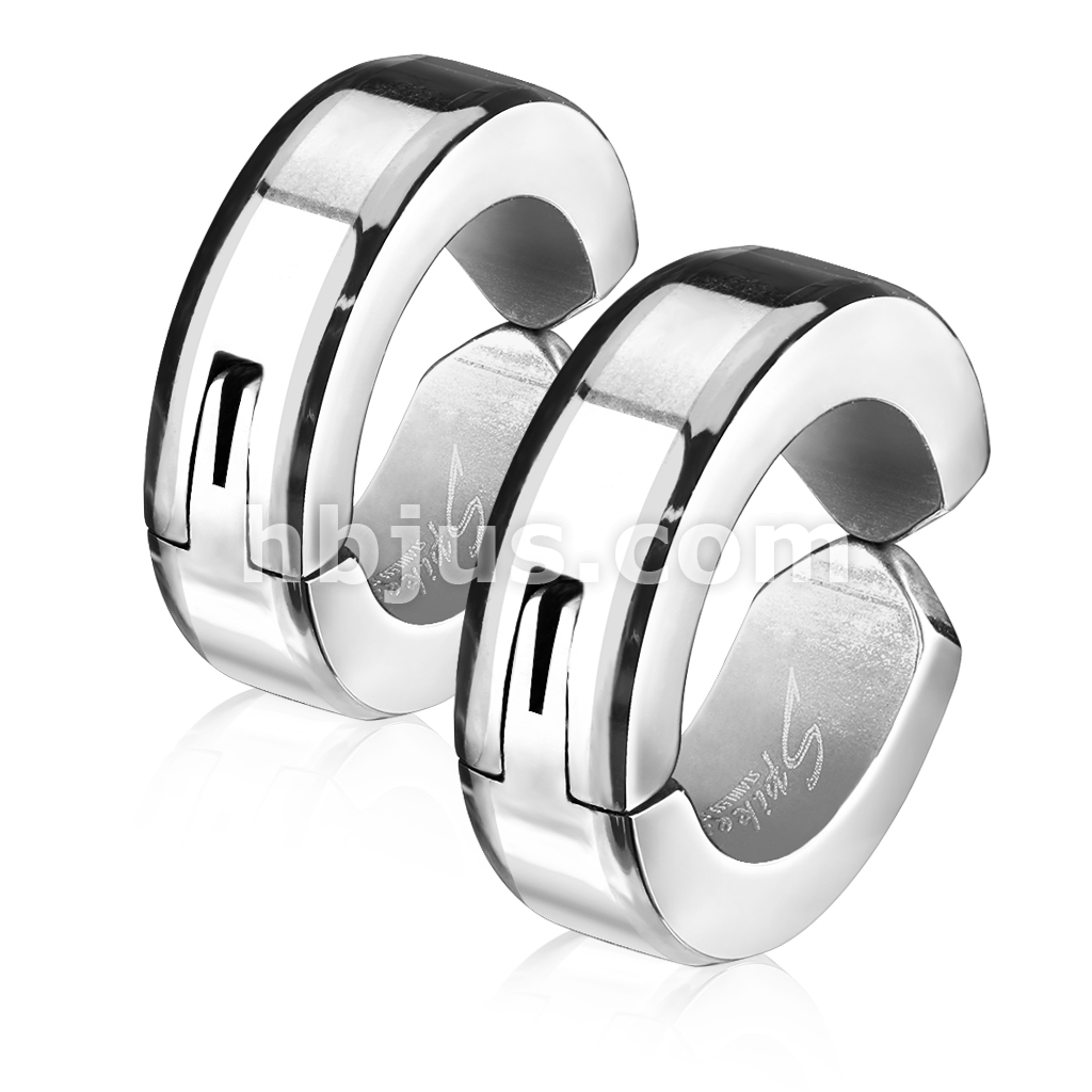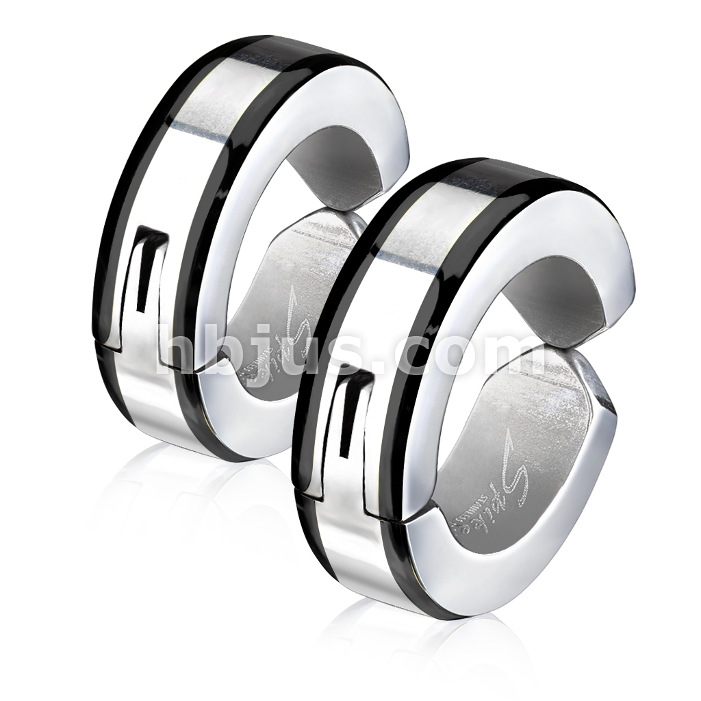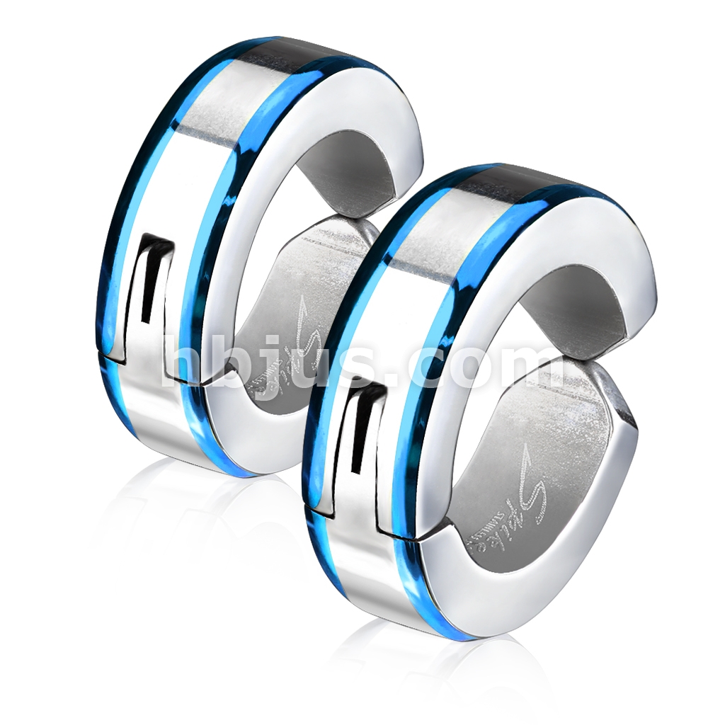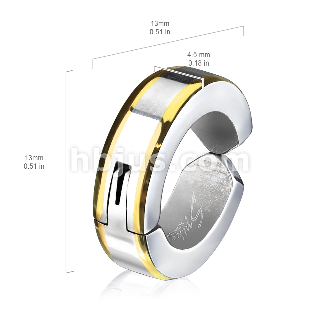 Beveled Edge Strip Color IP Pair of 316L Surgical Stainless Steel Non-Piercing Clip On Round Earrings