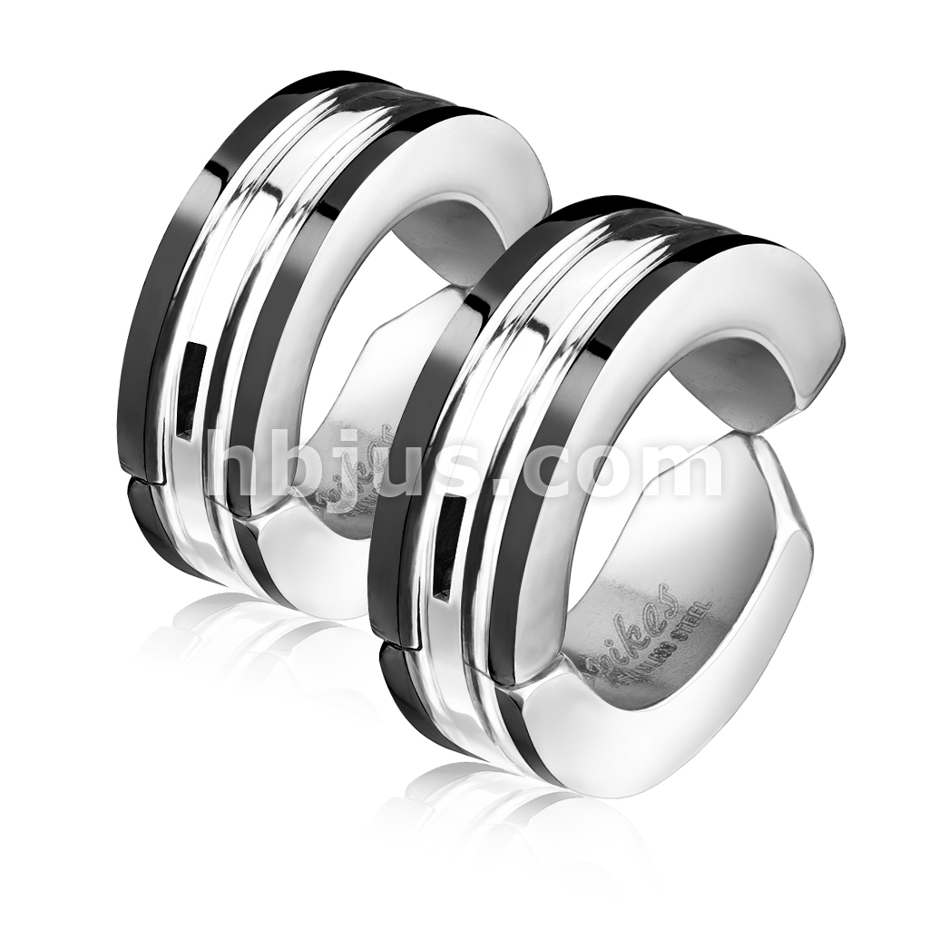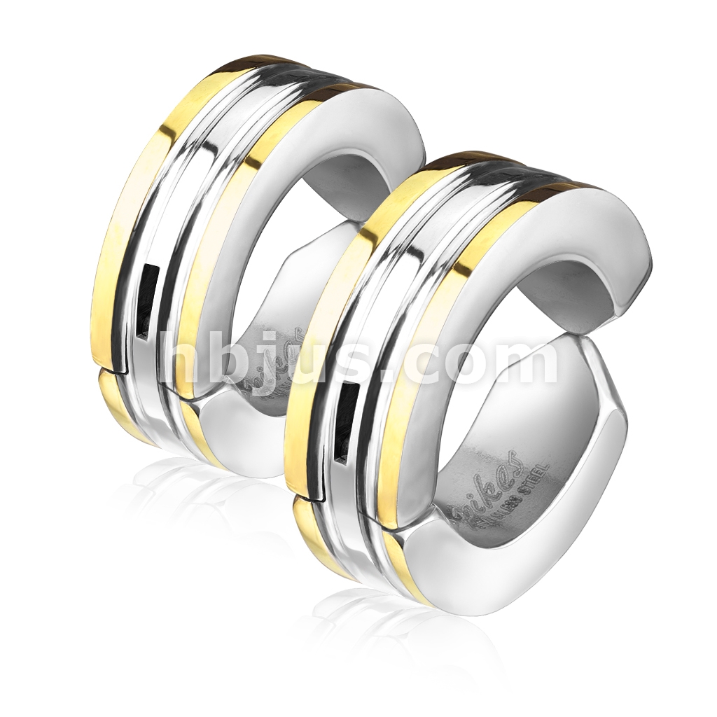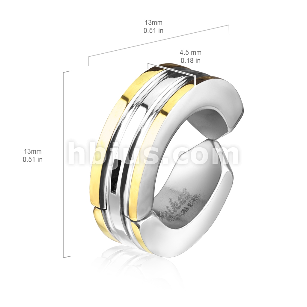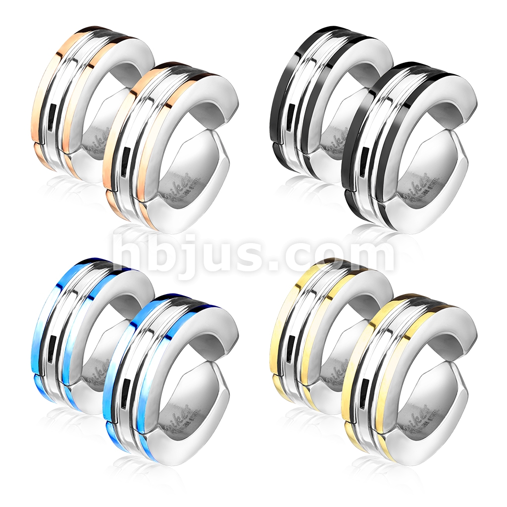 Edge Strip Color IP Pair of 316L Surgical Stainless Steel Non-Piercing Clip On Ear Cuff Round Earrings