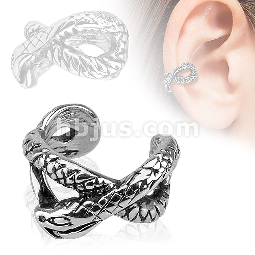 Snake Design Rhodium Plated Brass Non Piercing Ear Cuff