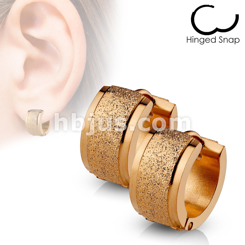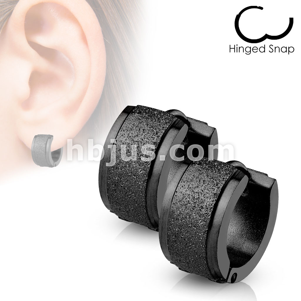 Pair of Sand Blast Center Stepped Edges Stainless Steel Hoop/huggie Earrings