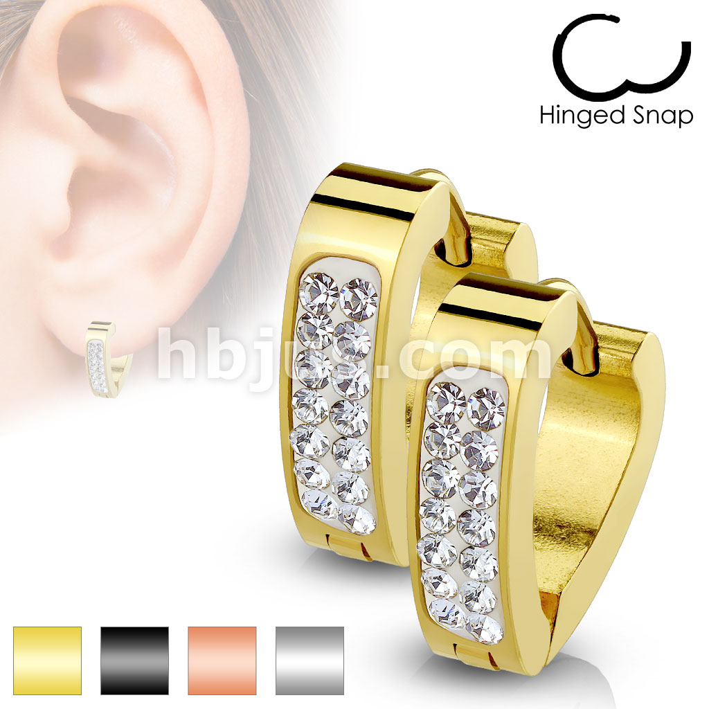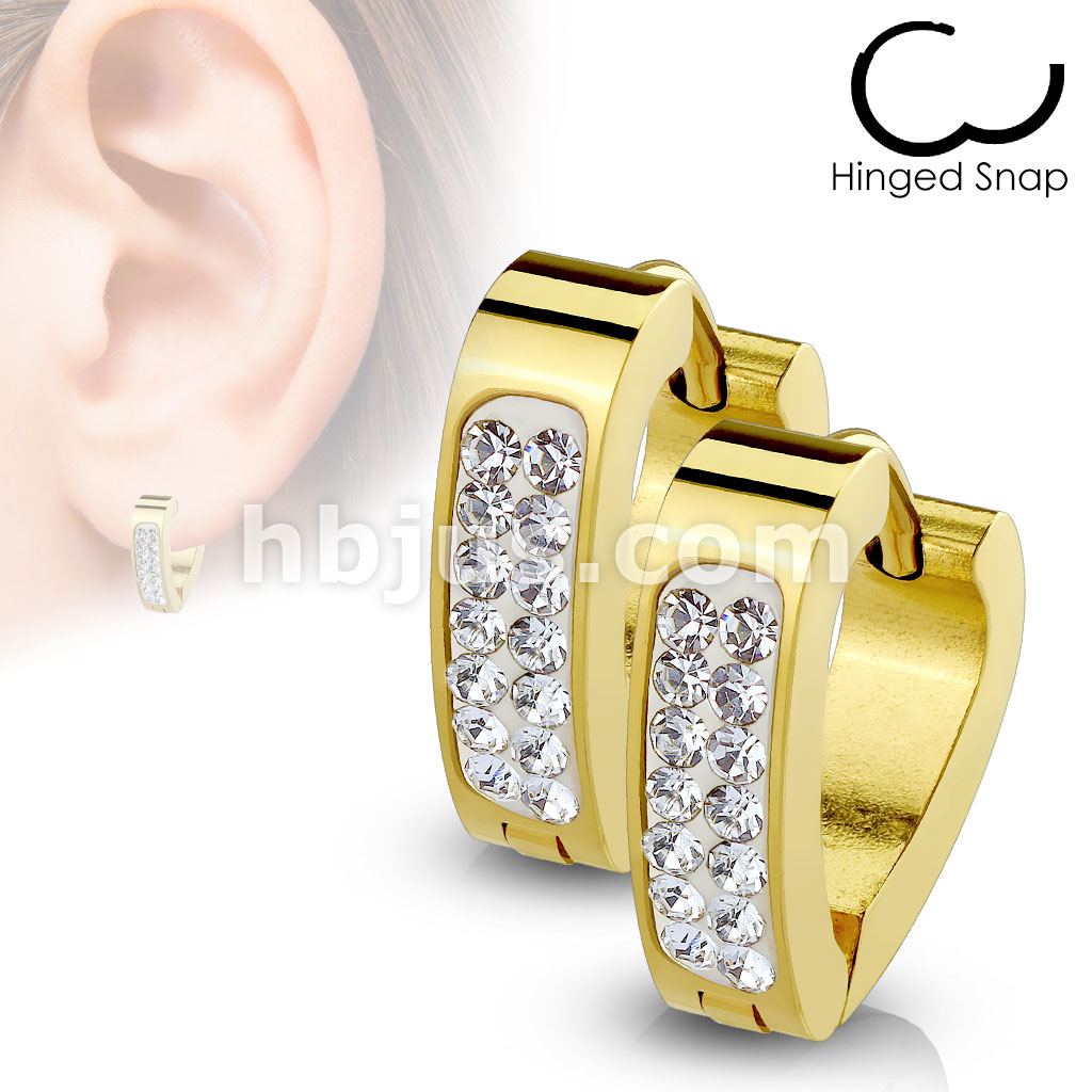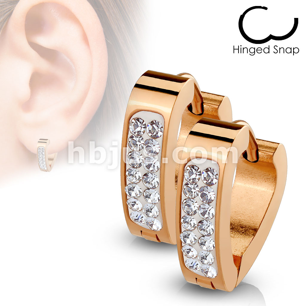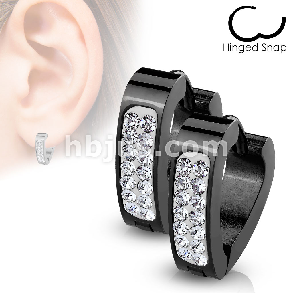 Pair of Clear Crystal Paved Triangle Shape Stainless Steel Hoop/Huggie Earrings