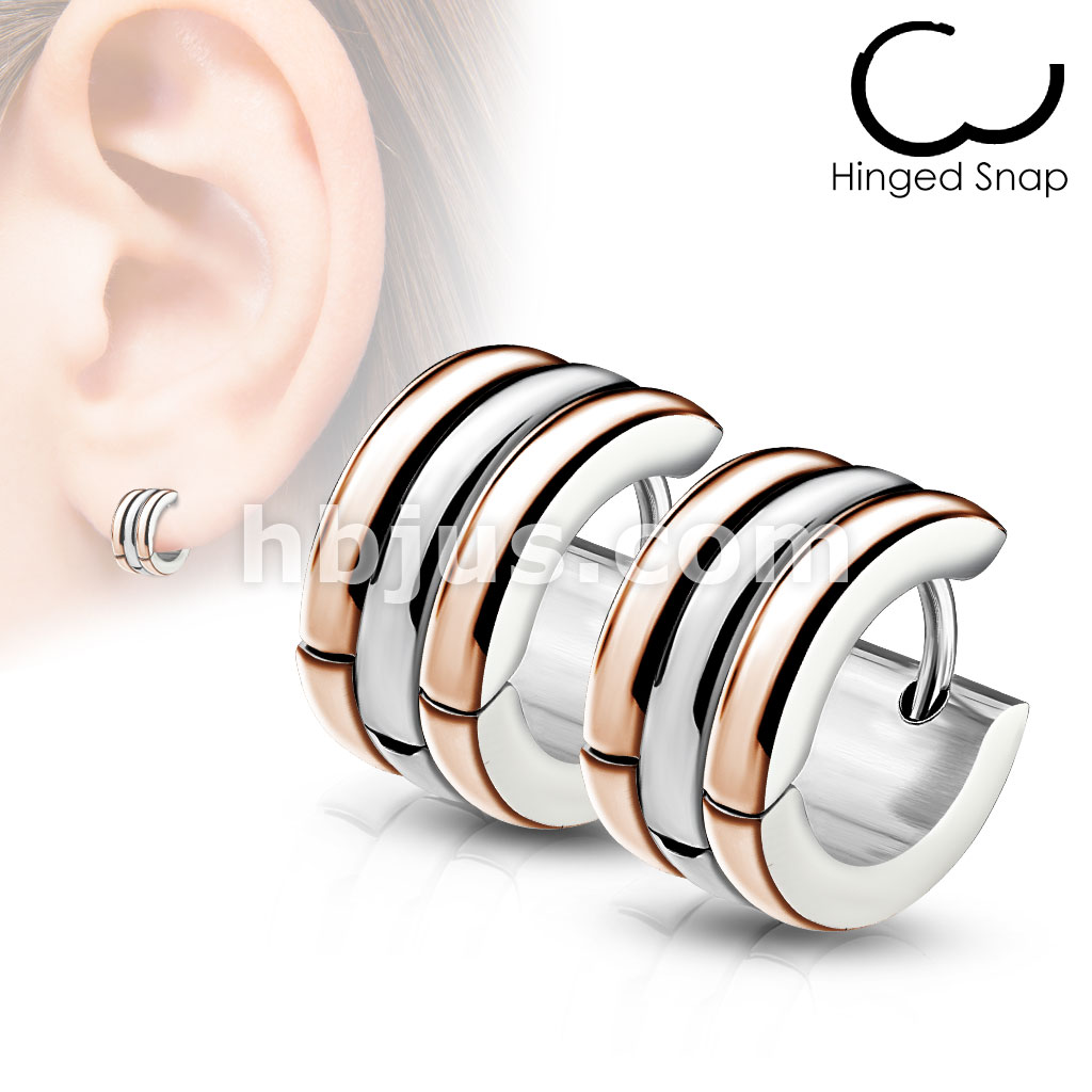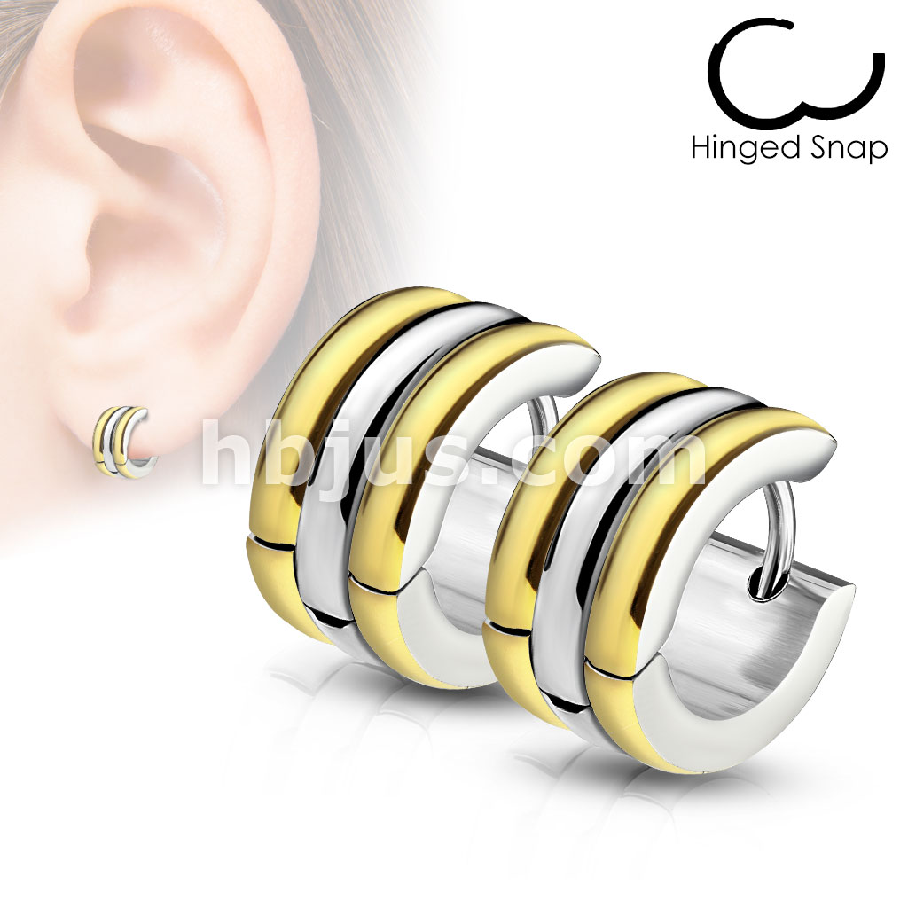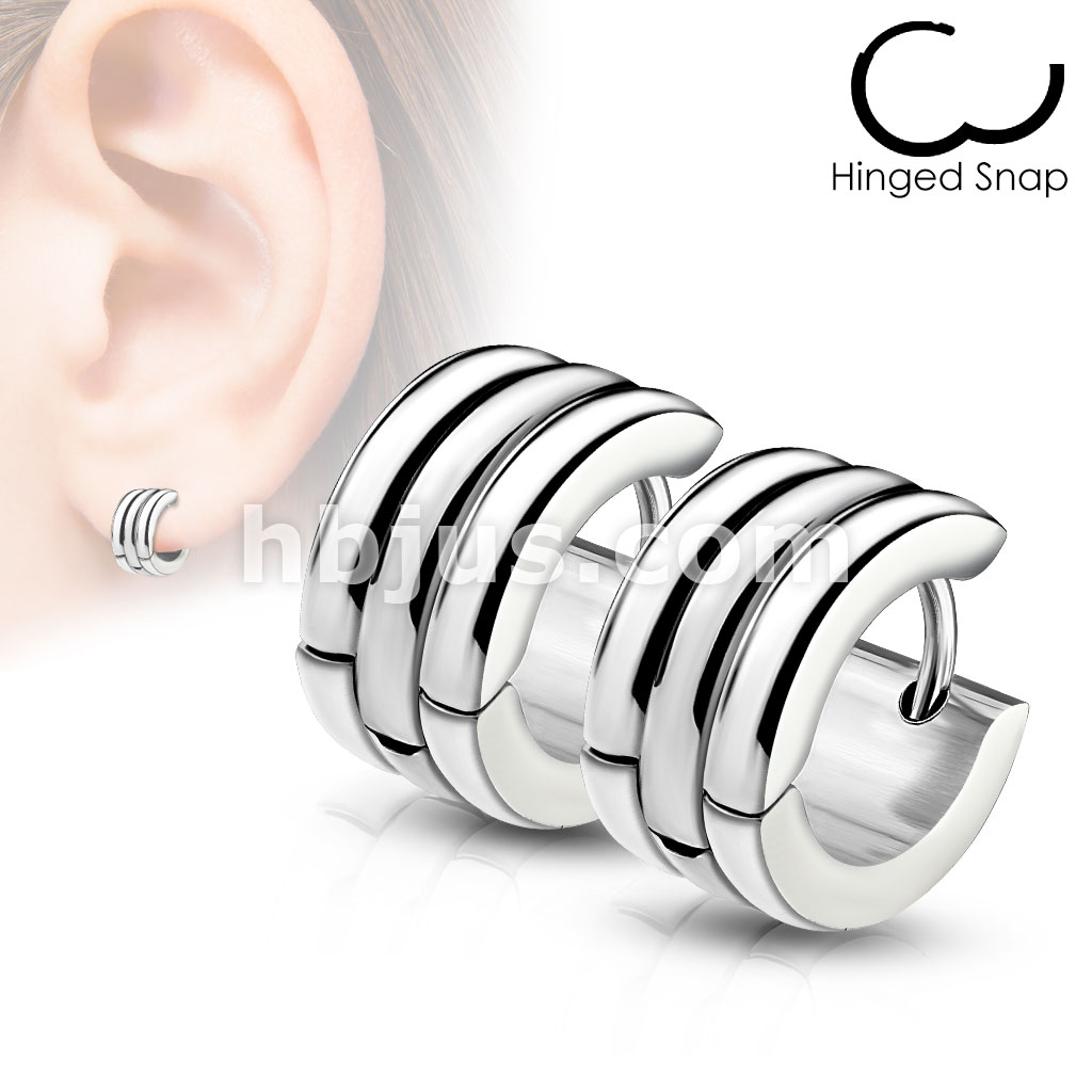 Pair of Triple Dome Stainless Steel Hoop/Huggie Earrings