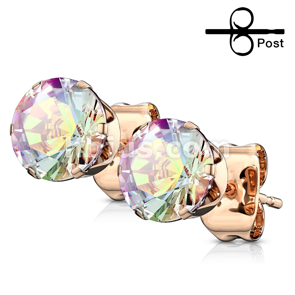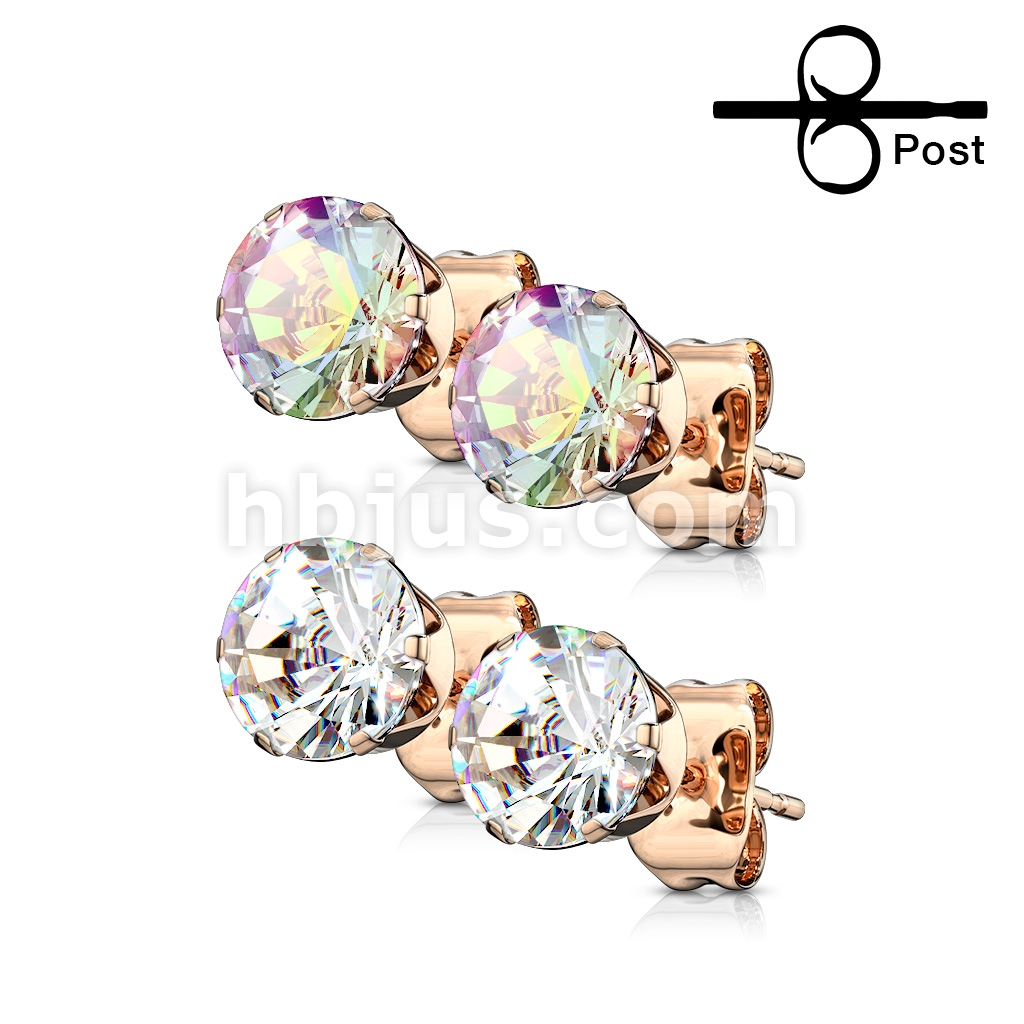 Pair of Rose Gold IP Over 316L Stainless Steel Stud Earring with Round CZ