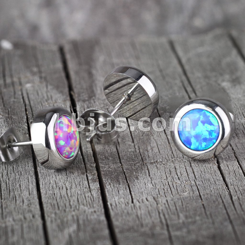 Pair of 316L Surgical Stainless Steel Stud Earrings with Bezeled Opal