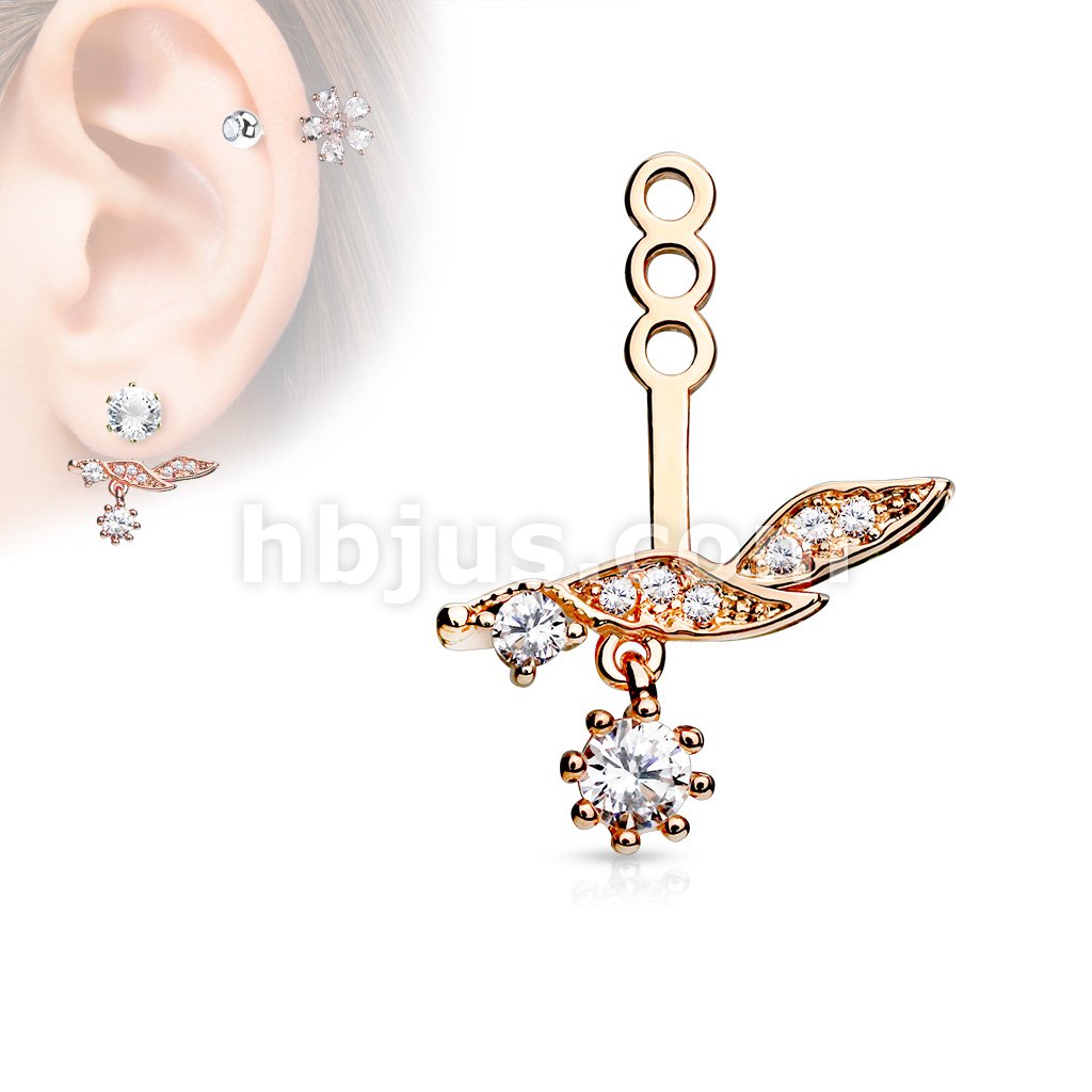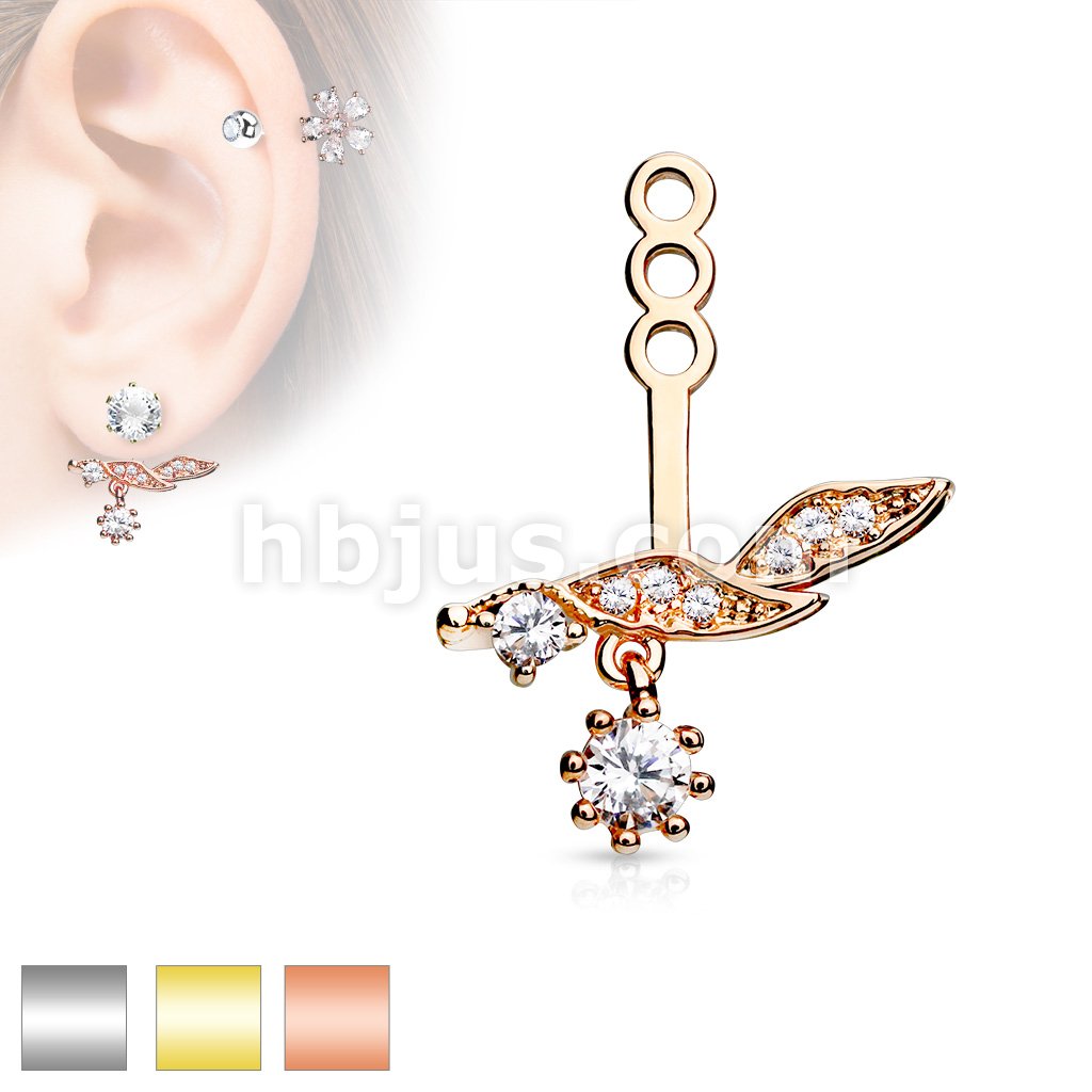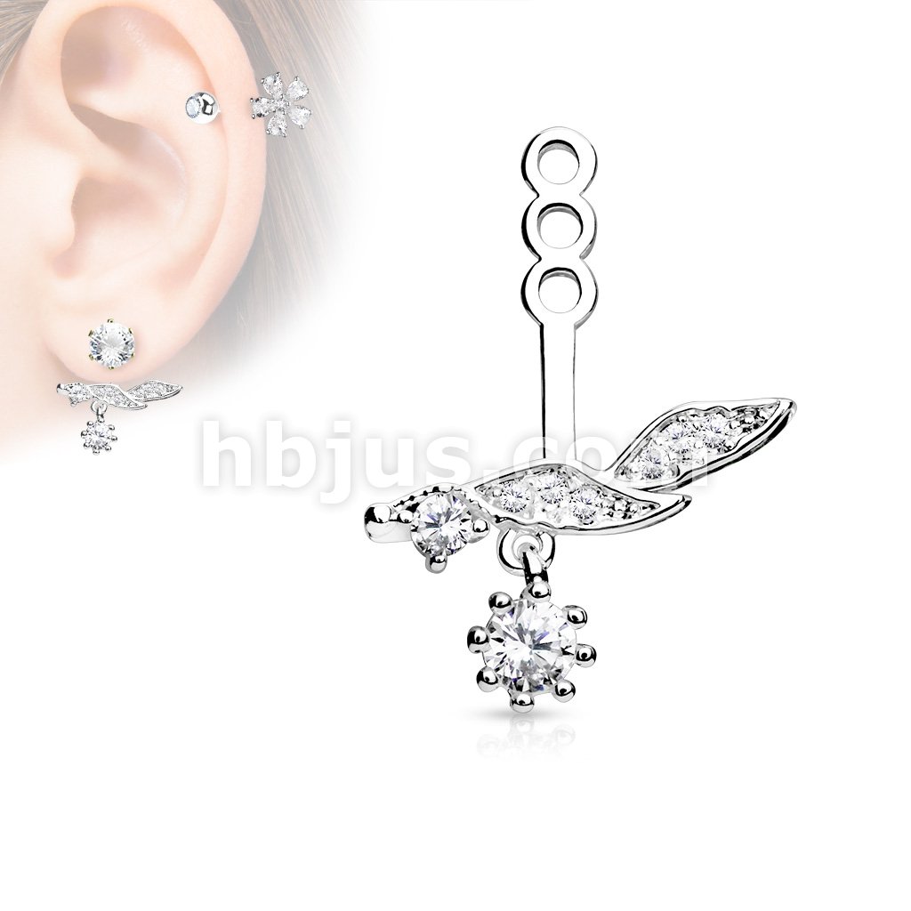 Micro Pave CZ Leaf With Round CZ Dangle Earring Jacket / Cartilage Stud Add on Dangle