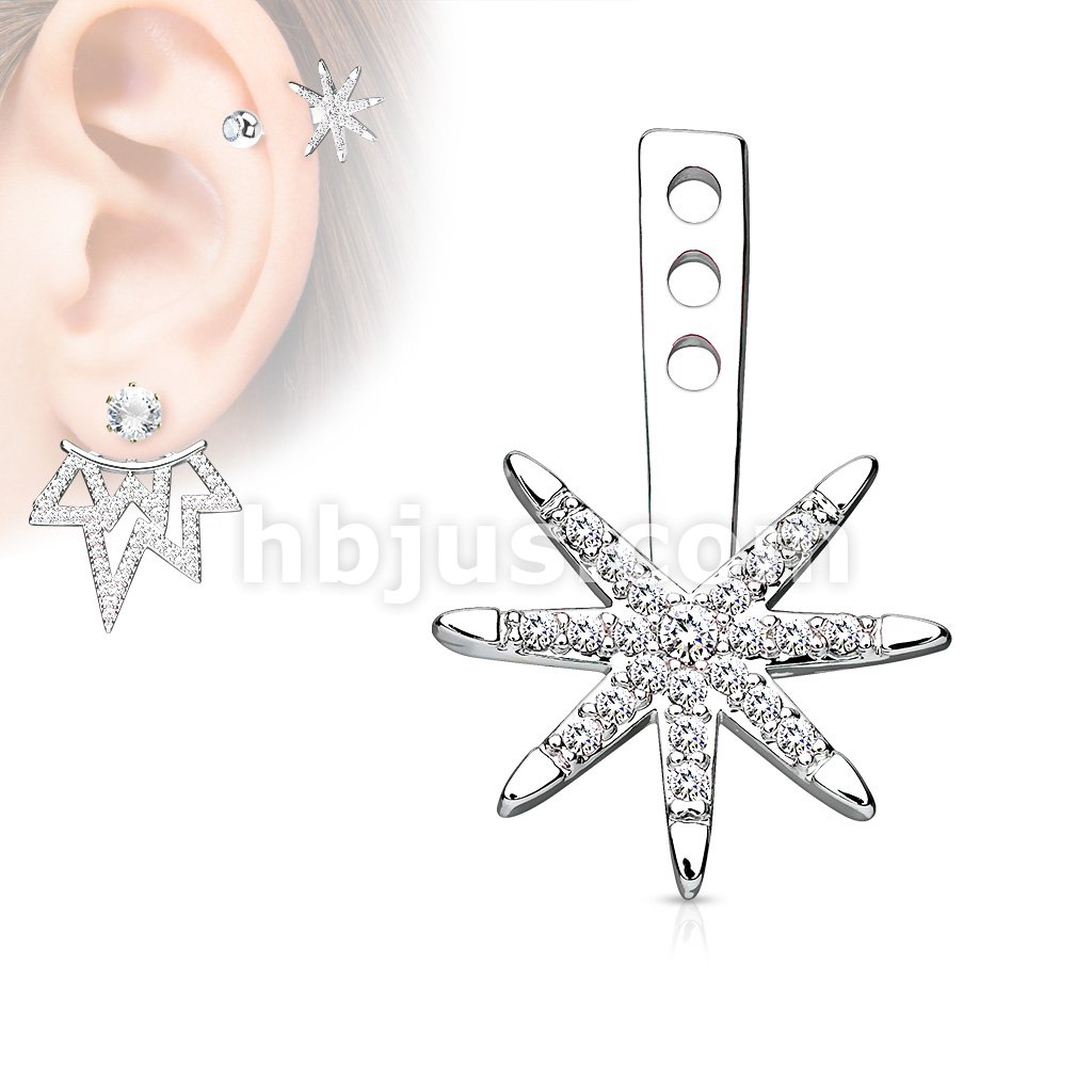Micro Pave CZ Starburst Earring Jacket / Cartilage Stud Add on Dangle