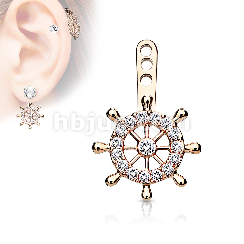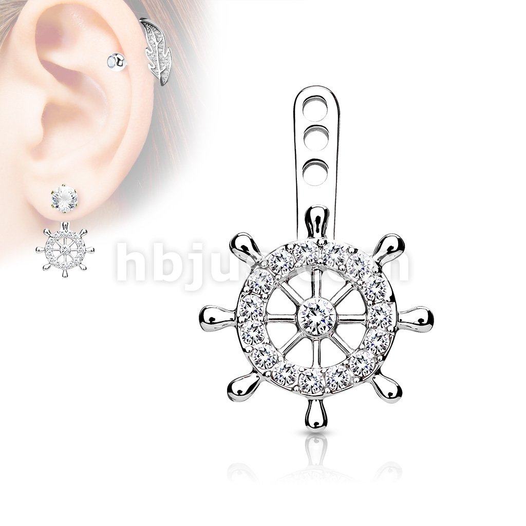 Ship Wheel Pave CZ Helm Earring Jacket / Cartilage Stud Add on Dangle